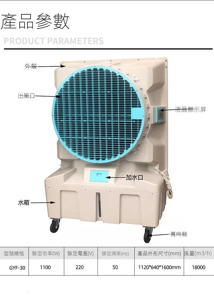 GYF-30 1100W 大功率工/商用冷風機 | 三檔風速 | 急速降溫