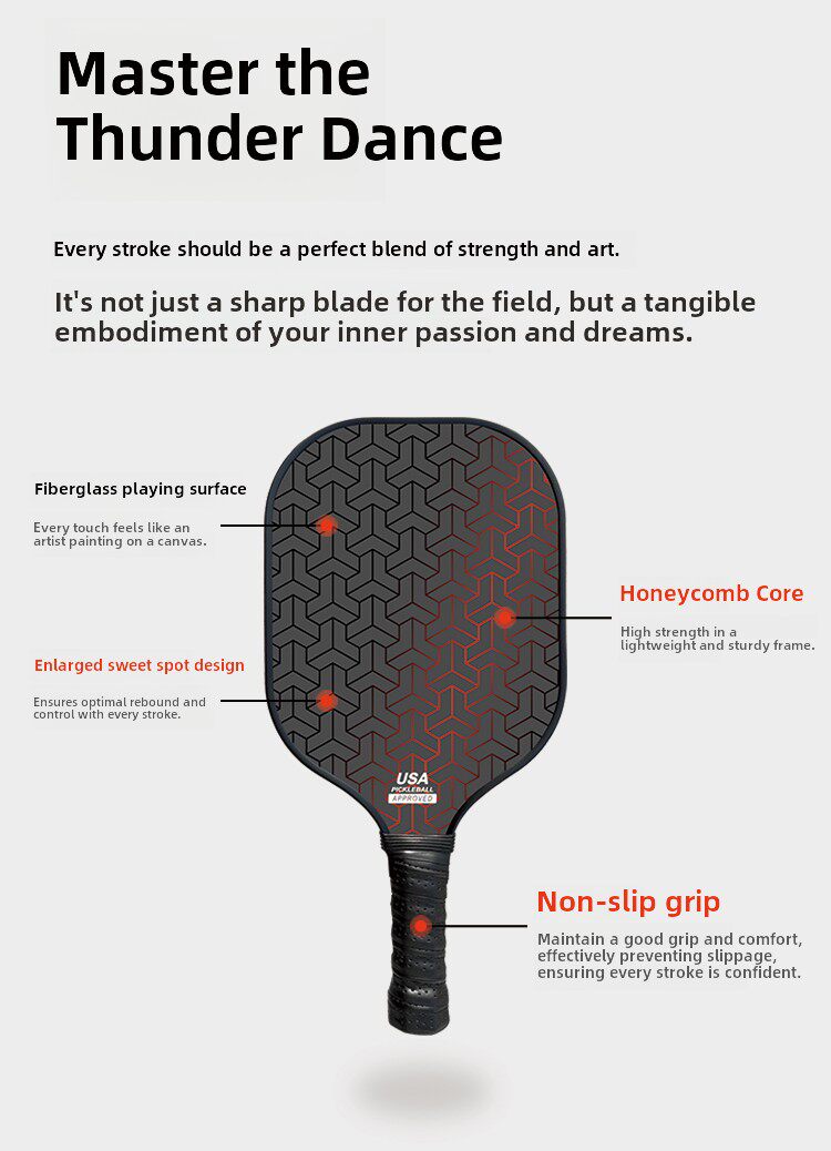 • 官方認證與空氣動力學:通過 USA APPROVED 美國匹克球官方認證,結合空氣動力學設計,讓每一次揮拍都體現無盡熱情與競技可能。
