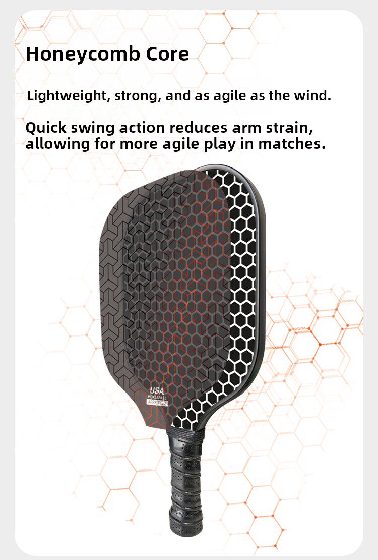 • 超輕量化蜂窩核心:核心結構僅重220克,結合蜂窩技術,大幅減輕手臂負擔,讓您在比賽中移動更迅速、揮拍更自如。