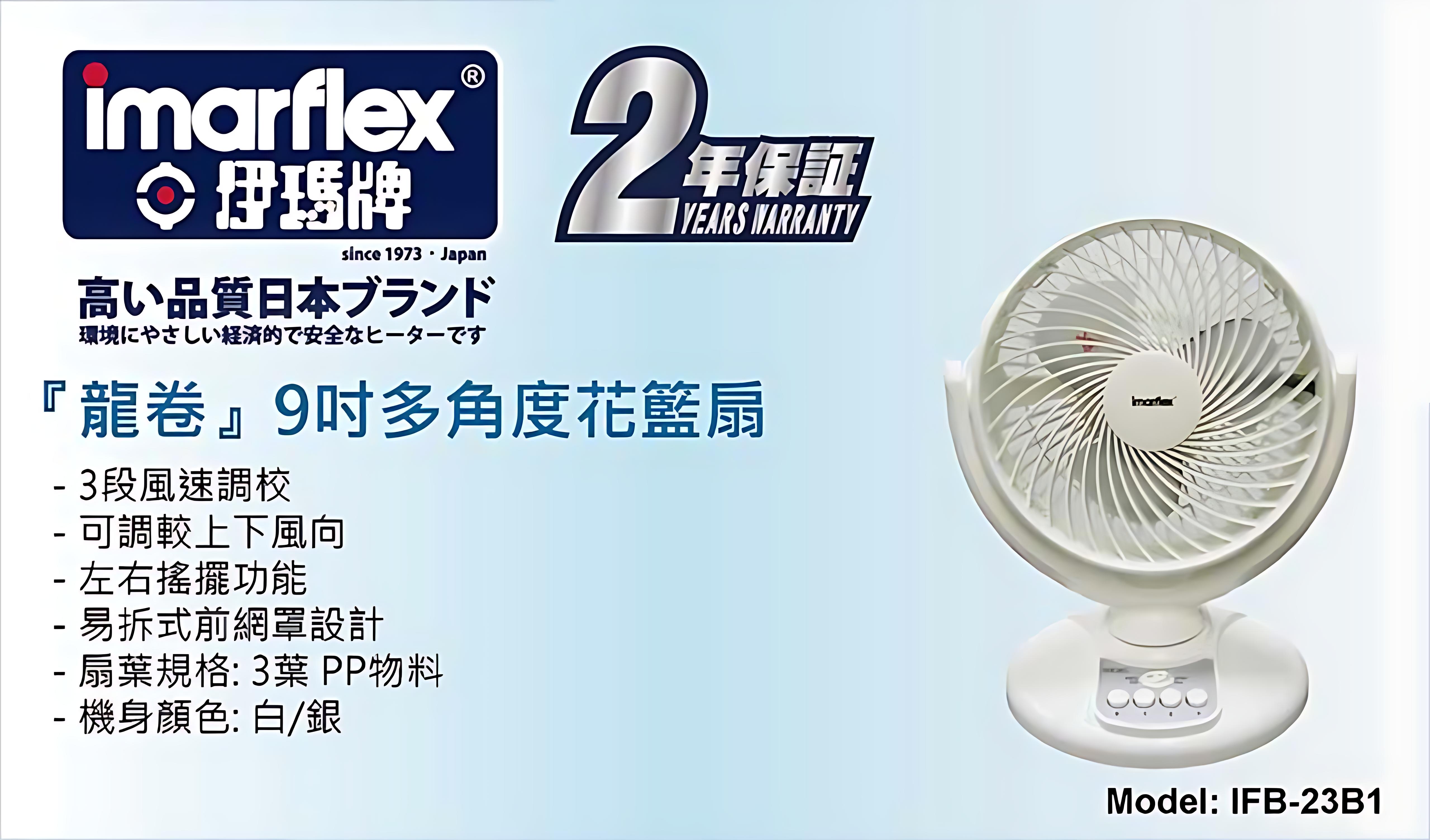 Imarflex 伊瑪牌『龍卷』9吋多角度花籃扇 - IFB-23B1 | 3段風速調校 | 香港行貨 | 兩年保養
