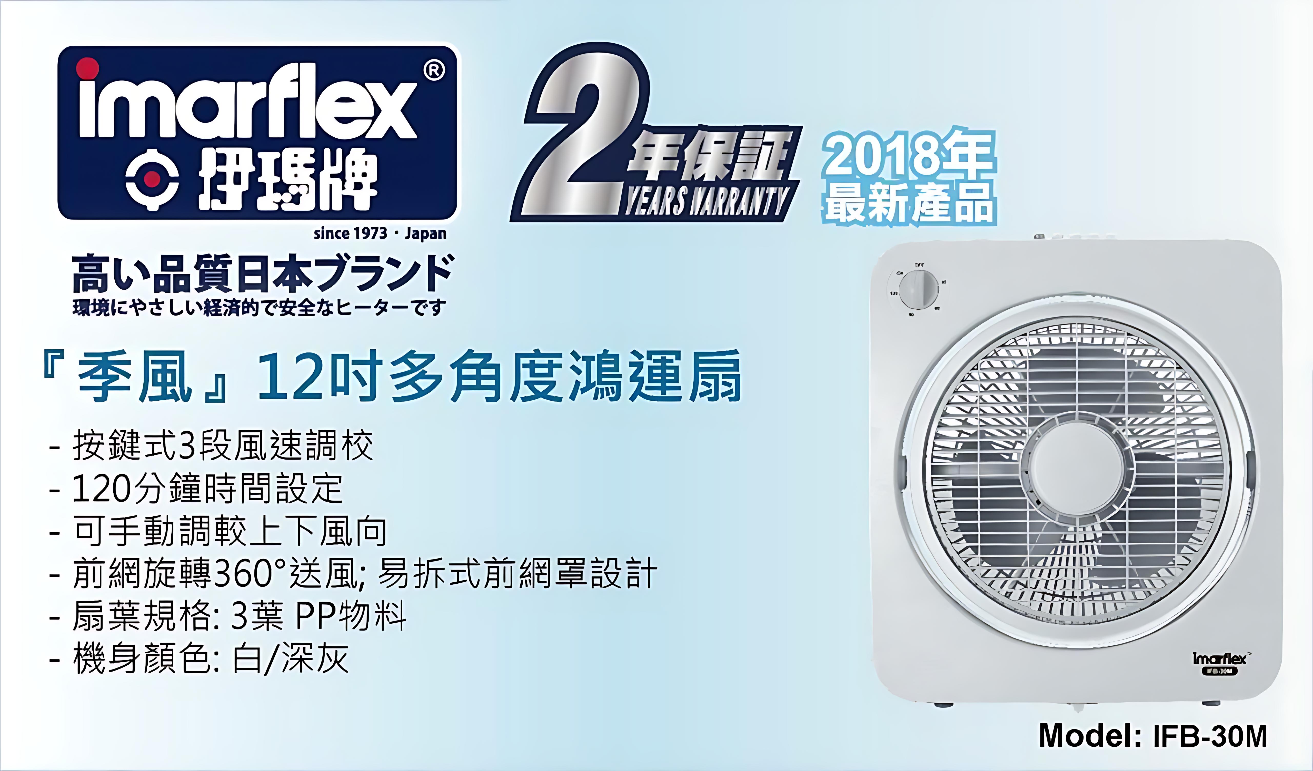 Buy Imarflex 伊瑪牌『季風』12吋定時多角度鴻運扇 - IFB-30M | 前網旋轉360°送風 | 香港行貨 | 兩年保養 price in outletexpress .com Hong Kong.In promotion and sale.