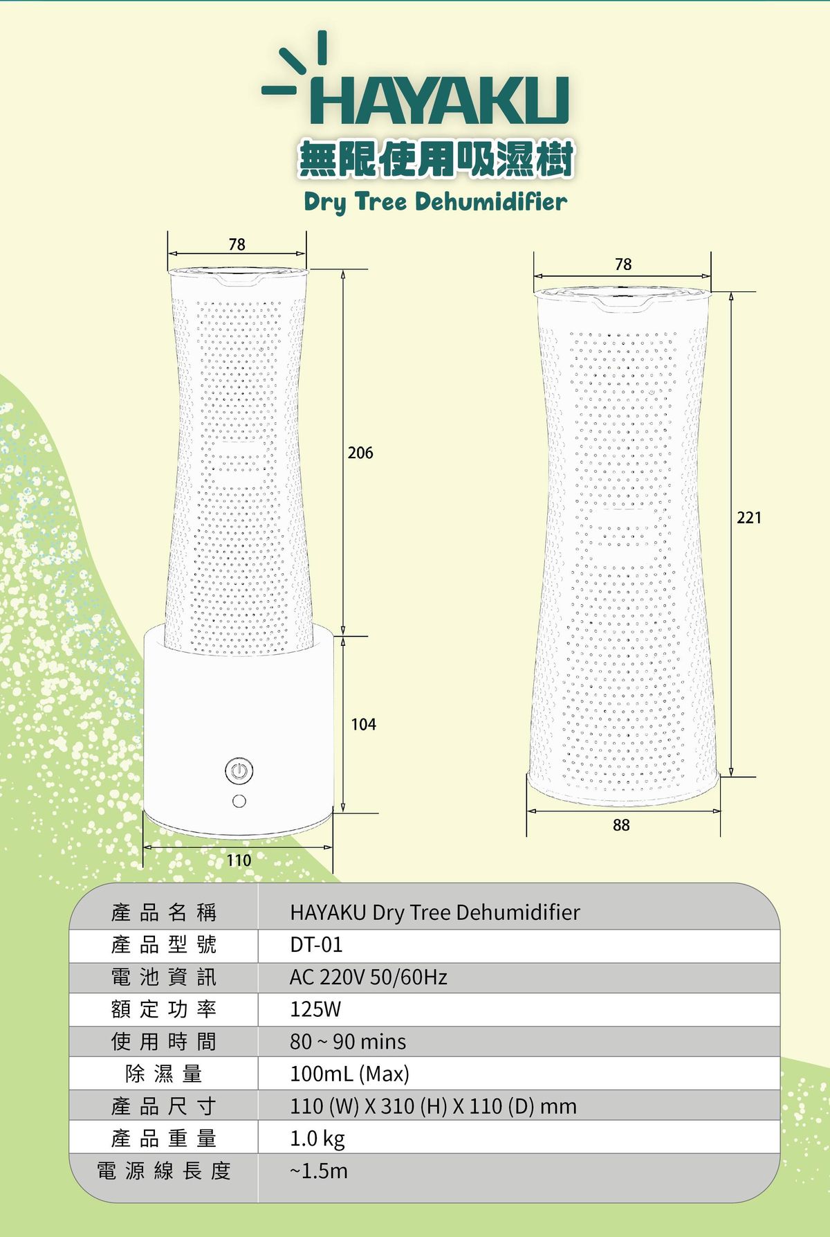 • 產品名稱: HAYAKU Dry Tree Dehumidifier