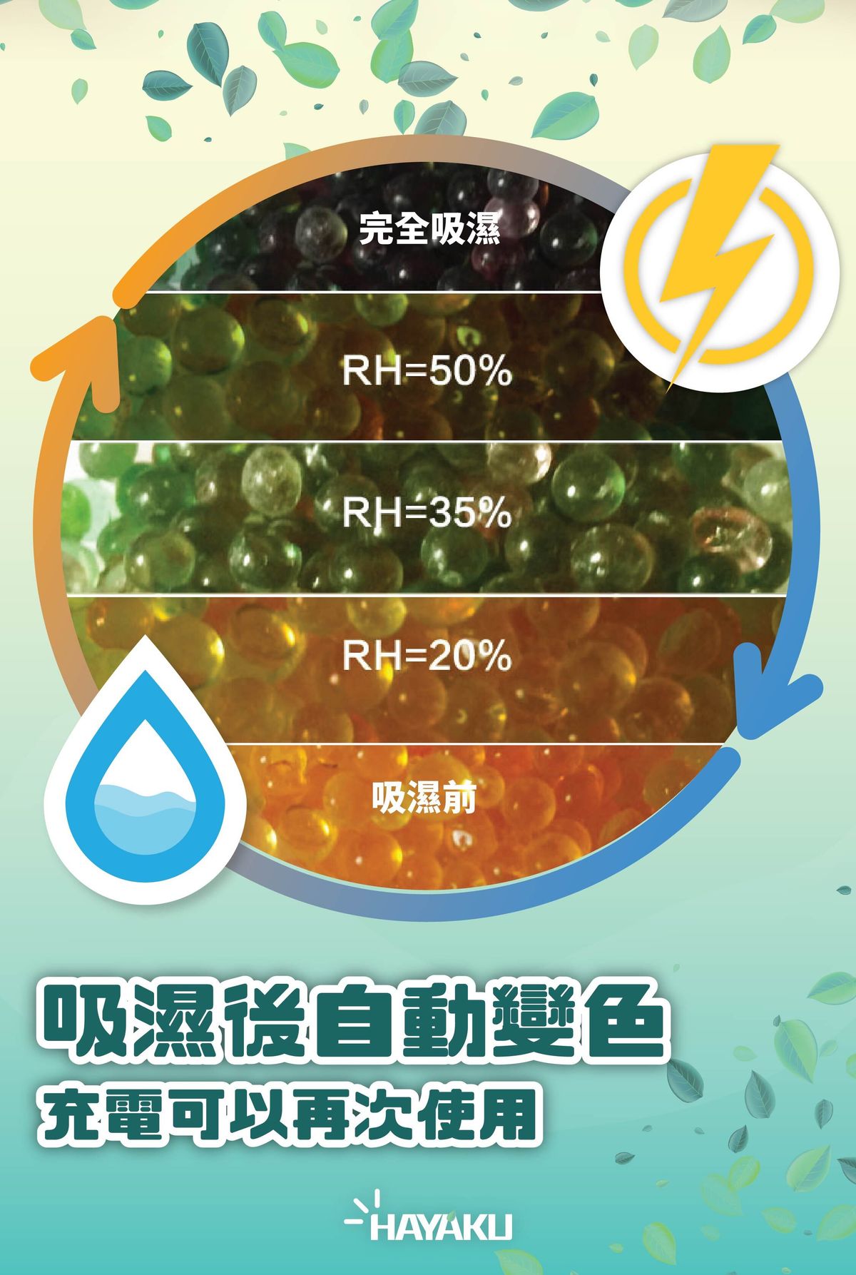• 吸濕珠自動變色提示,橙色未吸濕、綠色已吸濕,狀態直觀可見。