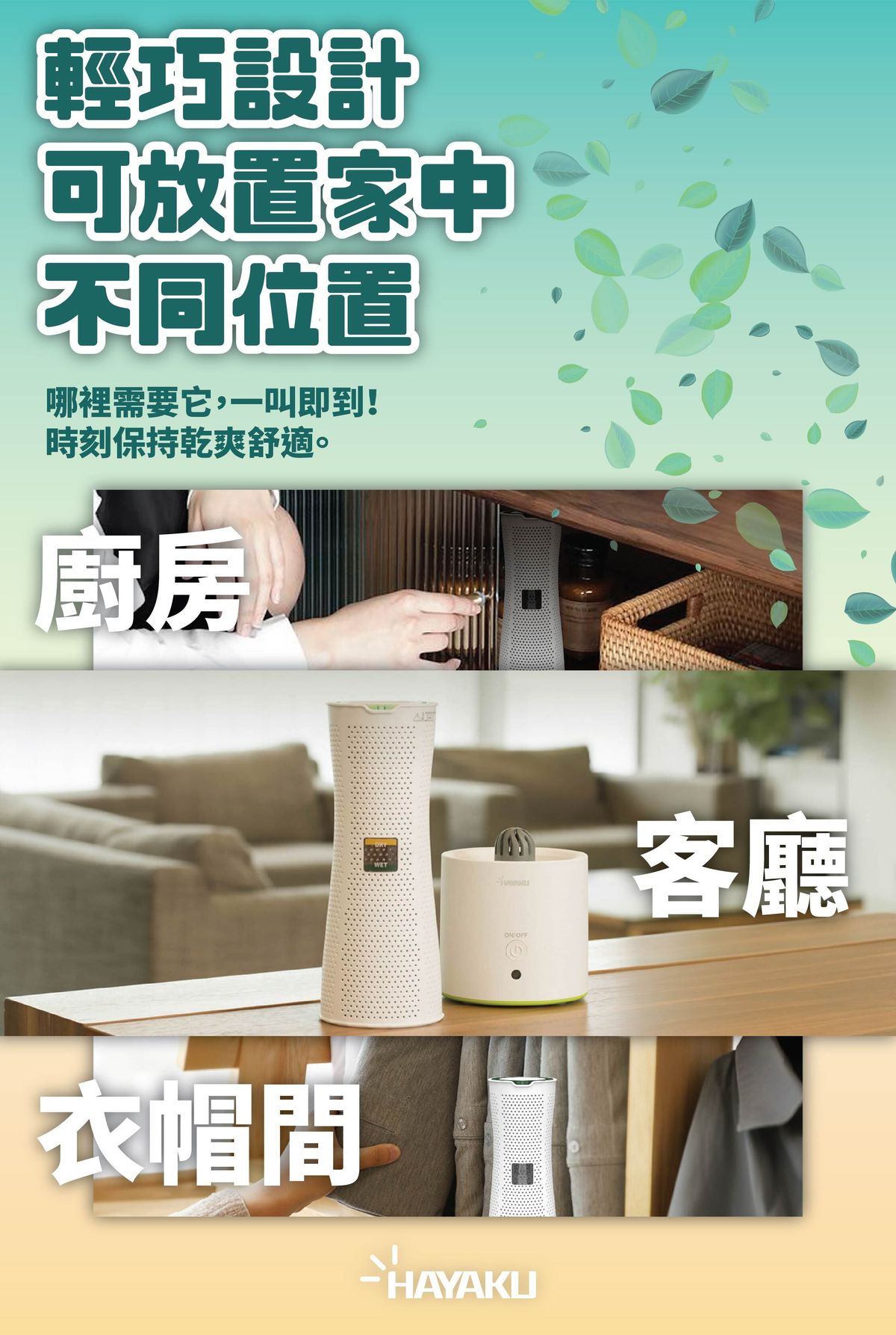 • 無線設計抽濕,無需複雜佈線,使用場景更靈活。
