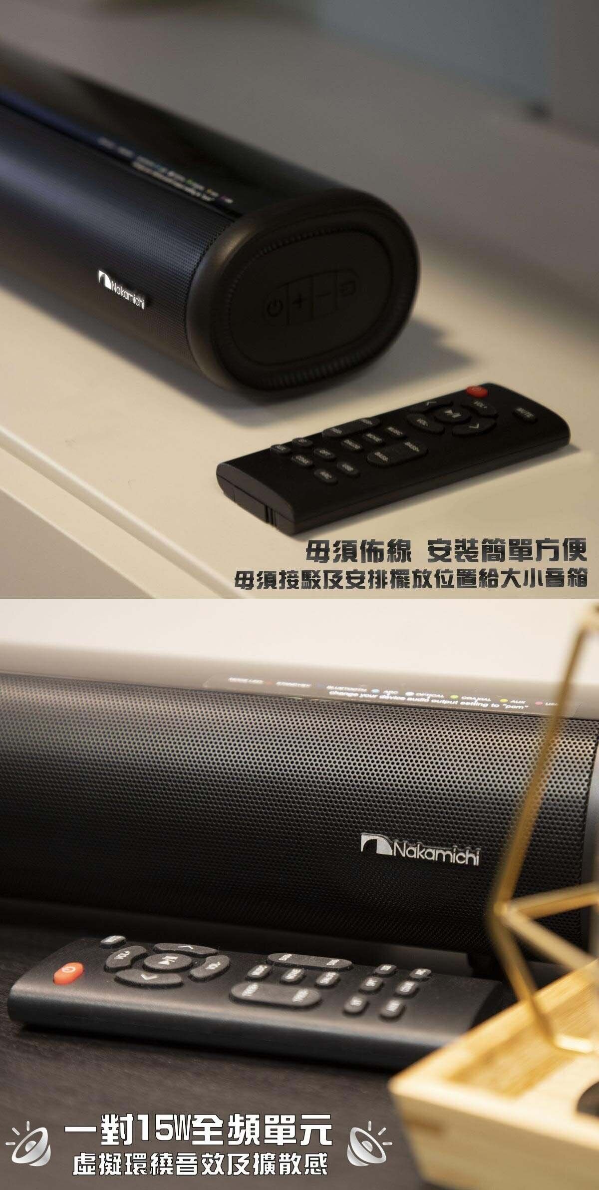 NAKAMICHI SoundStation Venus 2.0聲道 Mini Soundbar - 黑色 | 壁掛式/桌面式放置 | 支持多種輸入/輸出方式 | 香港行貨