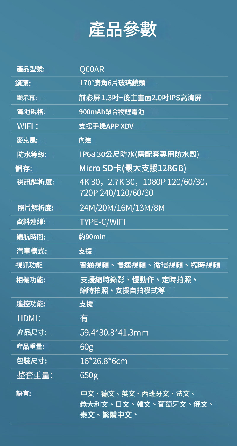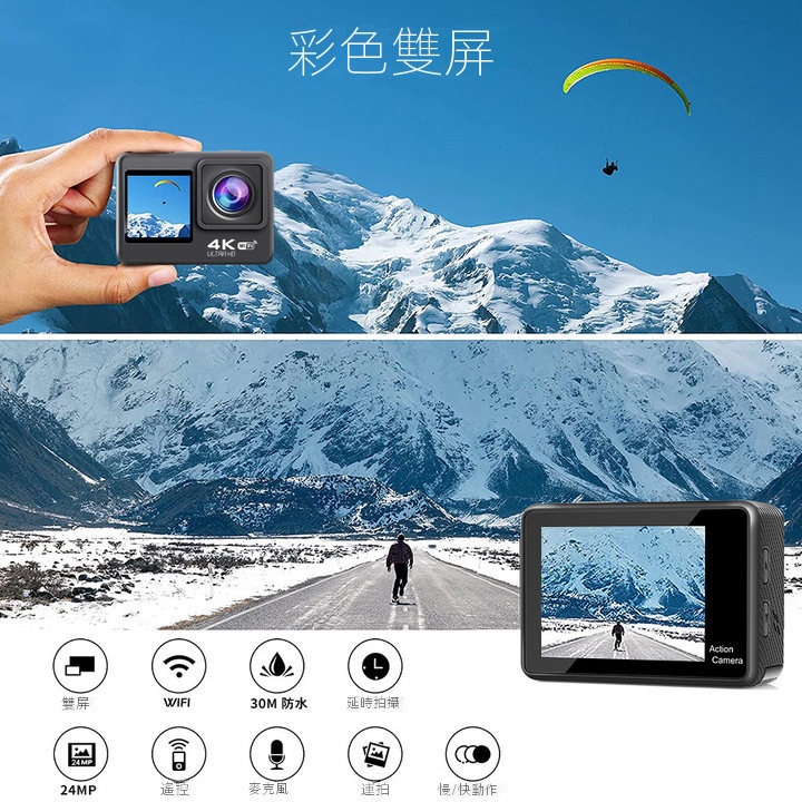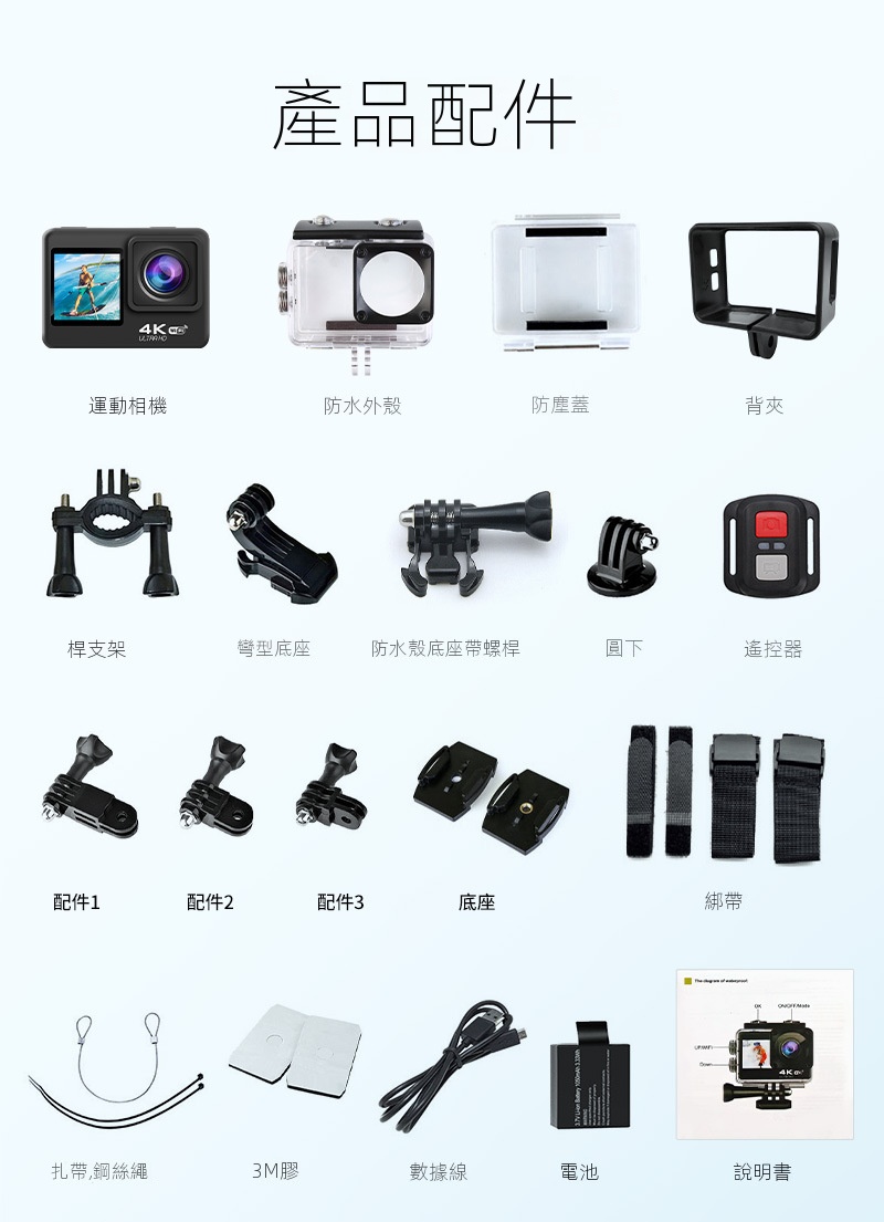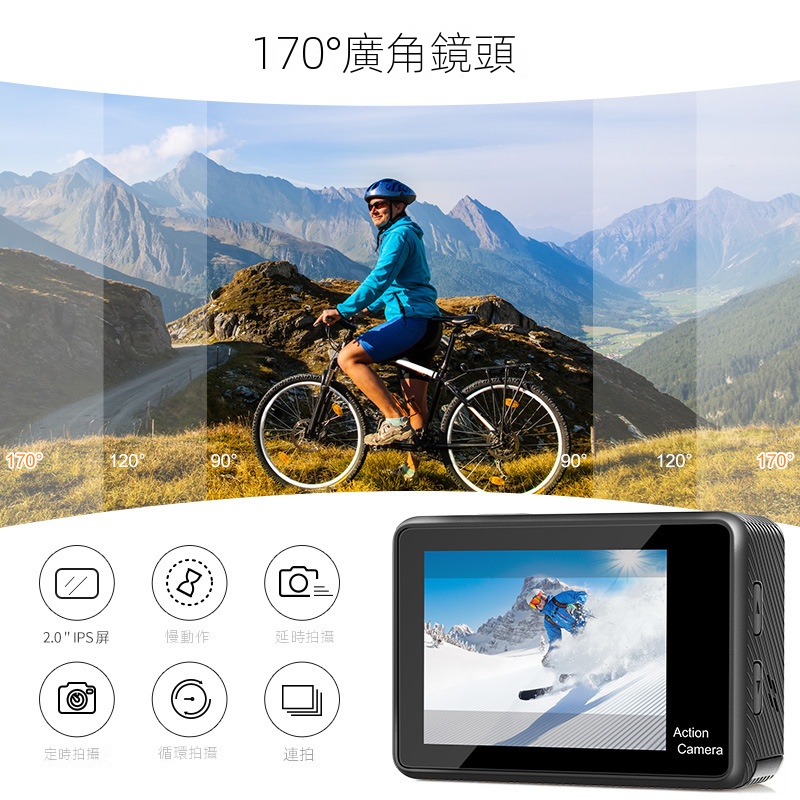 AT-Q60AR 4K防水高畫質運動相機 | 彩色雙螢幕 | 170°廣角鏡頭 | 多種拍攝模式 | WIFI連接