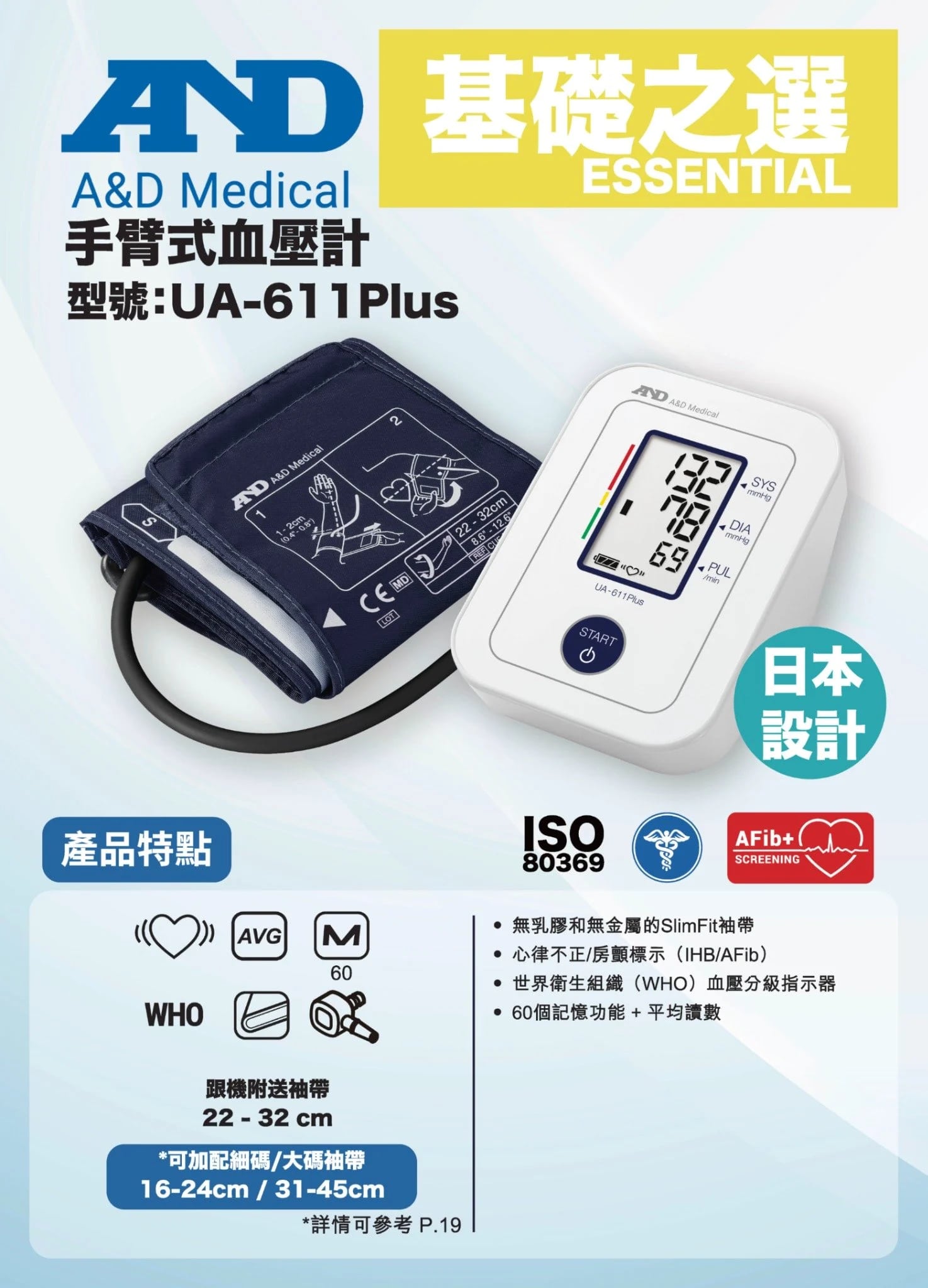 Outlet Express HK 生活百貨城在香港觀塘提供 AND UA-611 Plus 手臂式血壓計 - 白色 | IHB提示標籤 | 60記錄存儲 | 香港行貨 在那裡買邊到買或邊度買代理資料及價錢實惠借批發優惠以及公司學校報價,更可送到香港或澳門而部份產品比團購更優惠,更可以為你推薦推介相似產品及優點缺點,請留意我們最新產品價格更新。