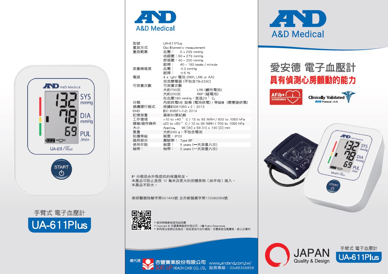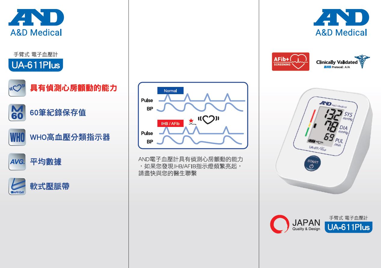AND UA-611 Plus 手臂式血壓計 - 白色 | IHB提示標籤 | 60記錄存儲 | 香港行貨
