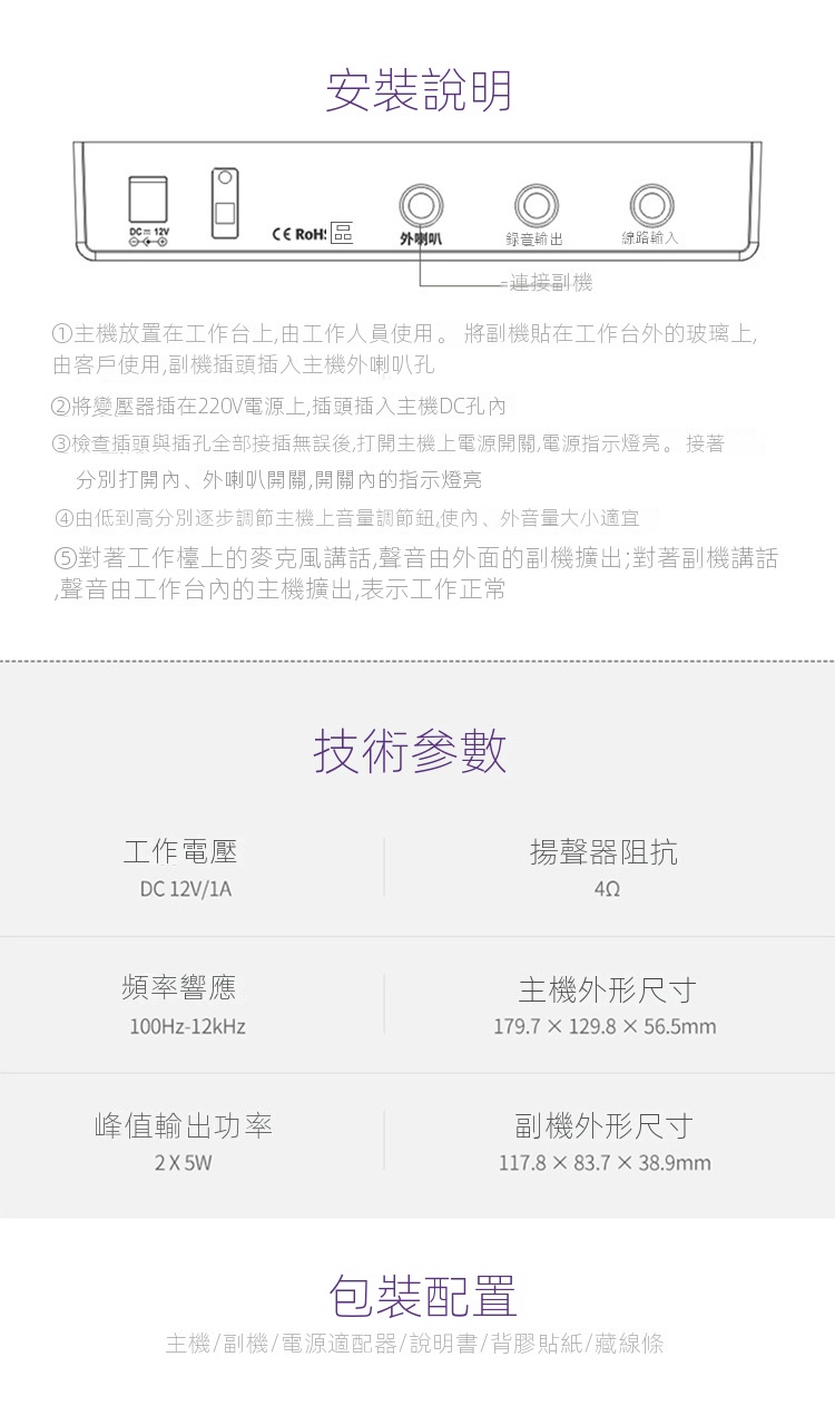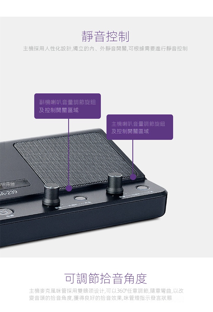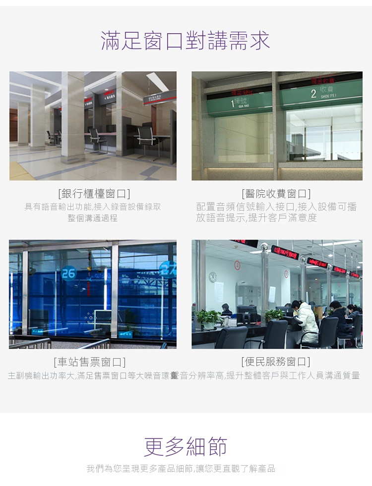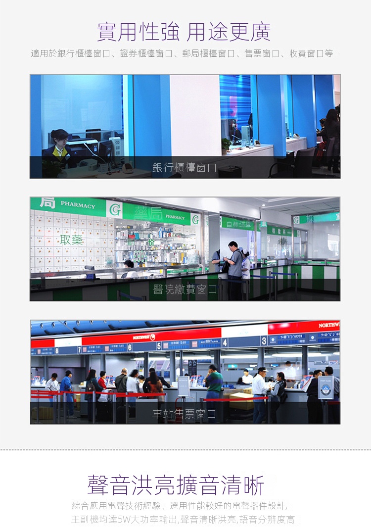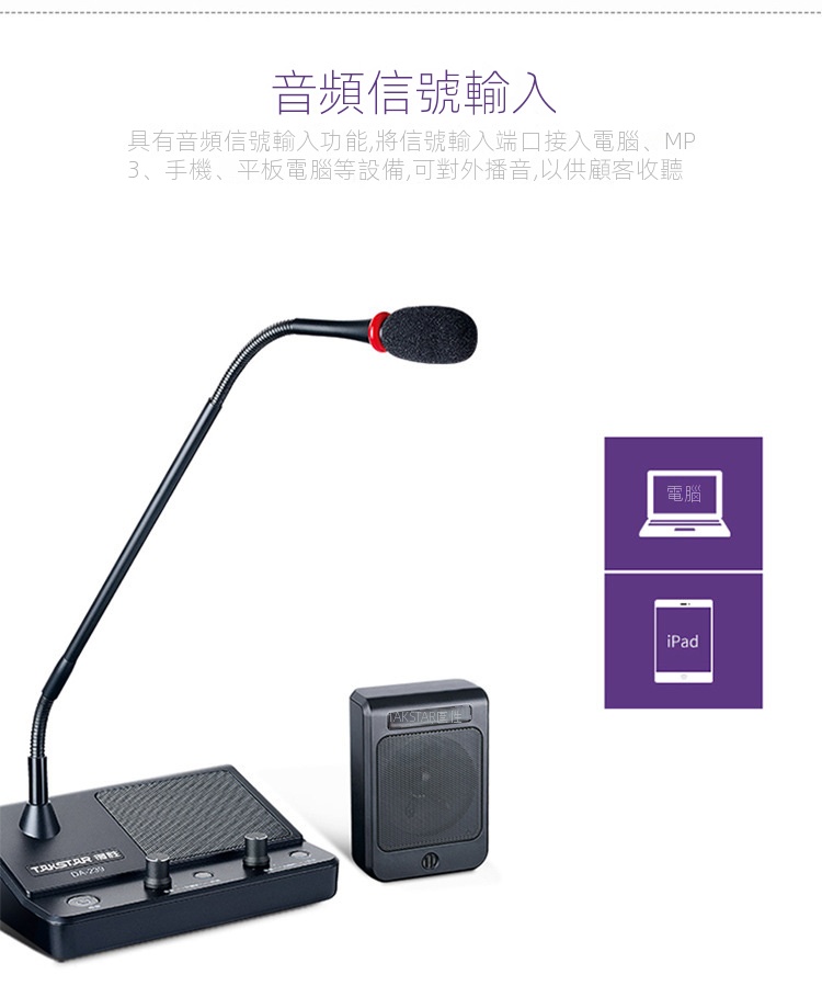 得勝 TAKSTAR DA239 視窗櫃位對講機 ,具備全自動通話控制、雙分機接口及立體聲插座輸出,支持高清錄音與3W輸出功率。內建高性能音頭,靈敏度高、噪音低,音質清晰自然。支援音頻信號輸入,可連接電腦、手機等設備進行外播。適用於銀行、證券、郵局、火車站、交款台、售票處、醫院等場所。