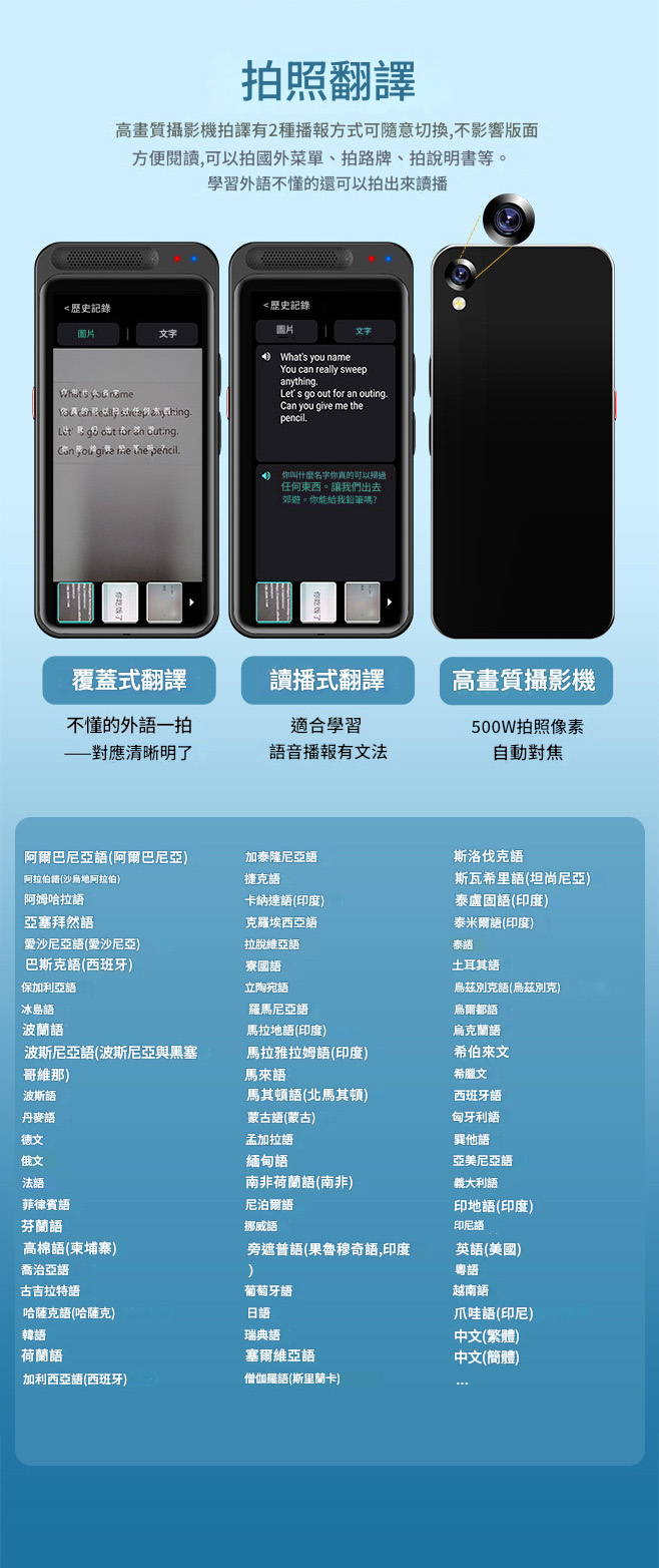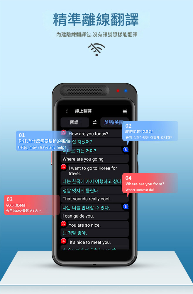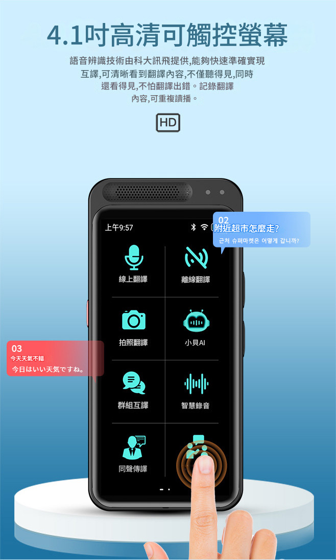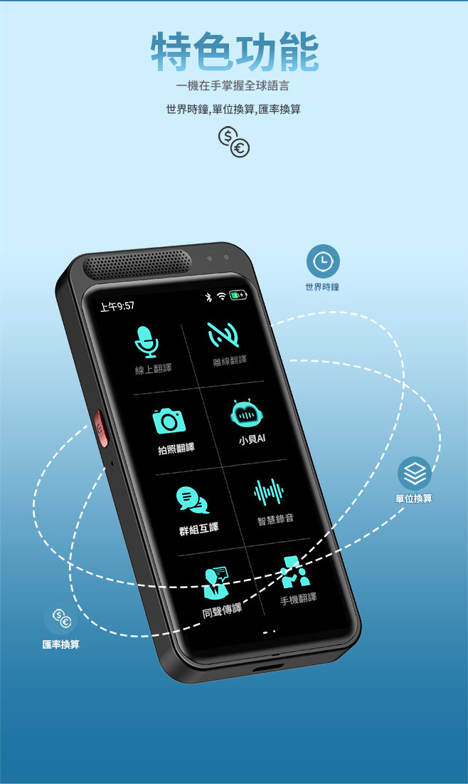 Vormor Z6 智慧型翻譯機,支援藍牙連接。離線模式下可翻譯20種語言,線上則涵蓋138種語言,滿足全球溝通需求。內建500萬像素相機,提供75國拍照翻譯功能,輕鬆應對各種場景。4.1吋高清螢幕,操作簡便,反應迅速。AI語音助手、群組互譯、智能錄音等多項特色功能,讓溝通無障礙,學習與工作更高效。無論旅遊、商務還是日常使用,Vormor Z6 都是您的最佳翻譯夥伴。