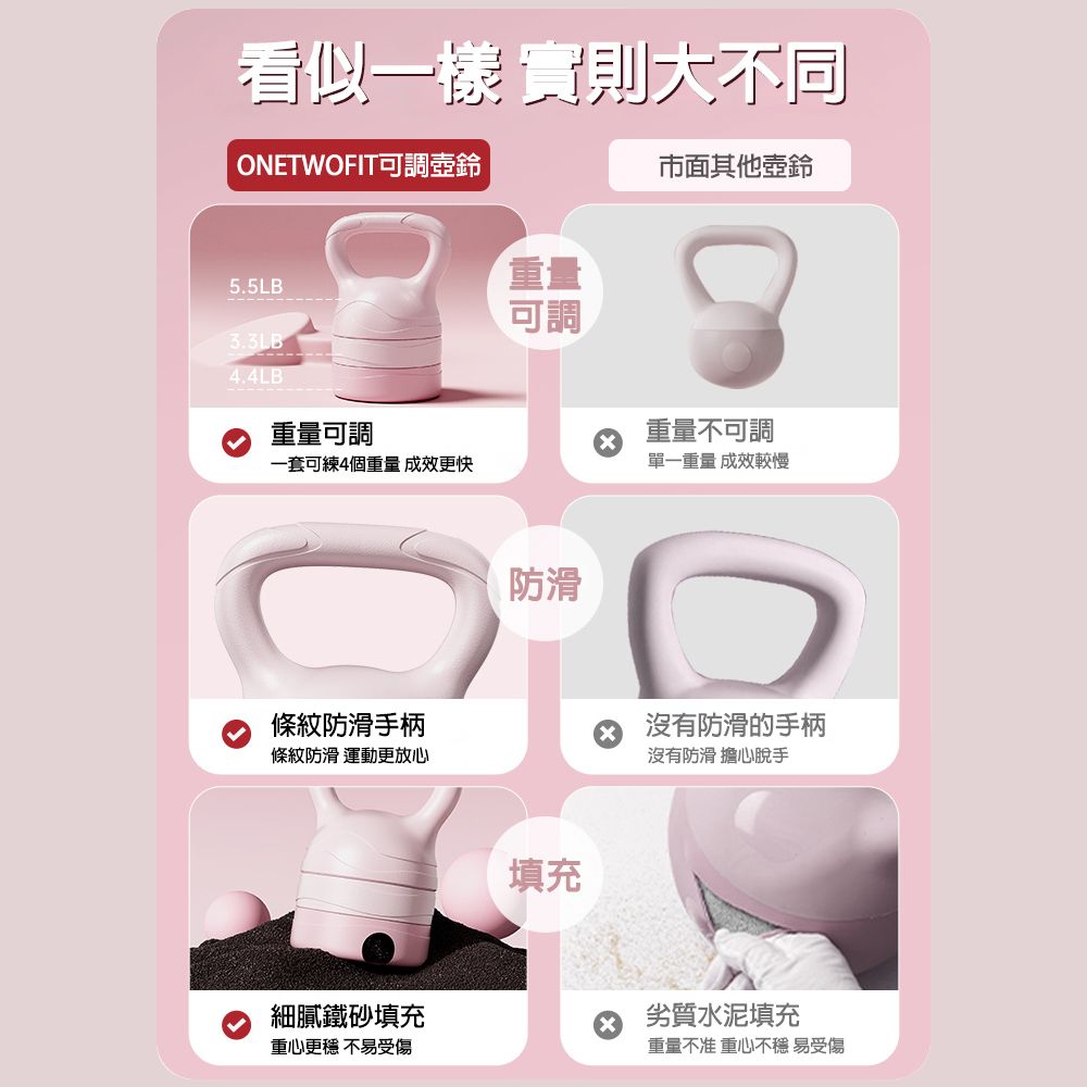 Buy ONETWOFIT ET046401 可調節重量壺鈴 - 櫻花粉 | 雙重安全鎖扣 | 防滑紋路握把 | 香港行貨 price in outletexpress .com Hong Kong.In promotion and sale.