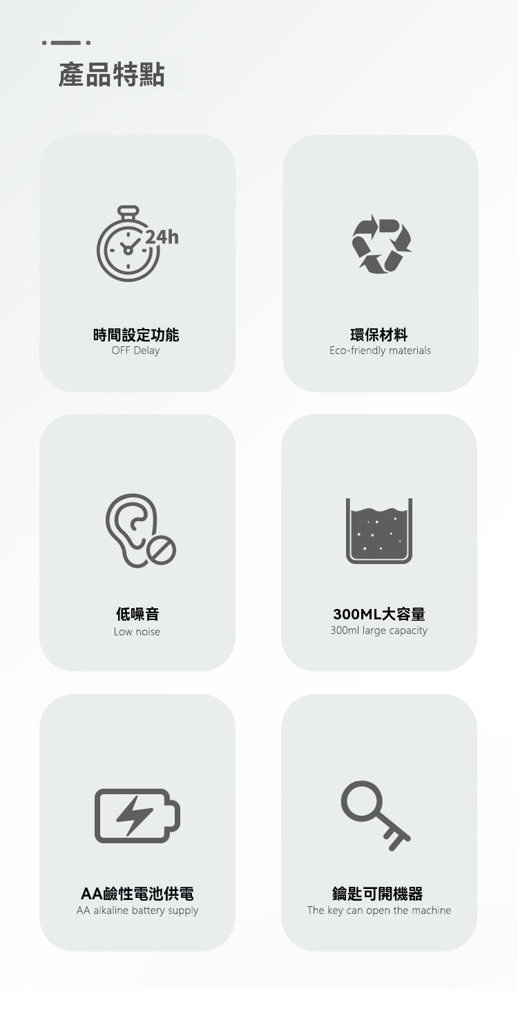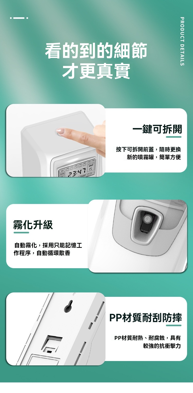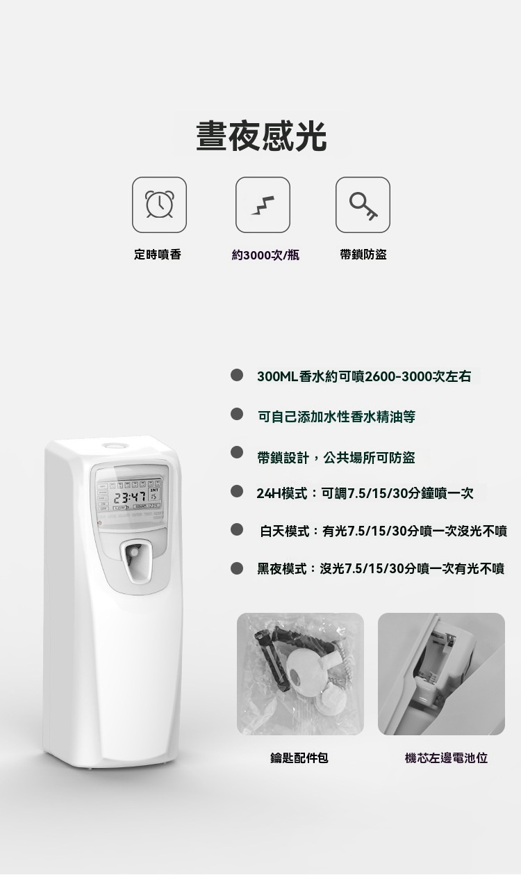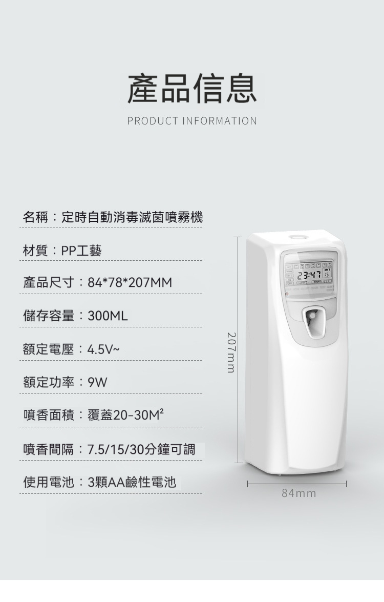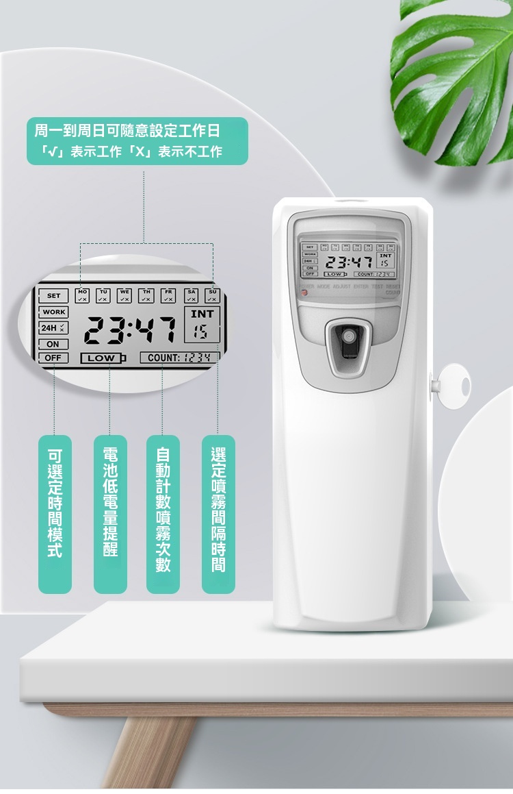 這款定時自動消毒滅菌噴霧機,白色外觀簡單大方。擁有300ML大容量,減少頻繁加液困擾。它能自動記錄噴霧次數,方便掌握消毒進程。可定時自動噴霧,輕鬆設定消毒時間與間隔,實現高效消毒,適用於家庭、辦公、學校等多種場景,為您營造健康無菌環境 。