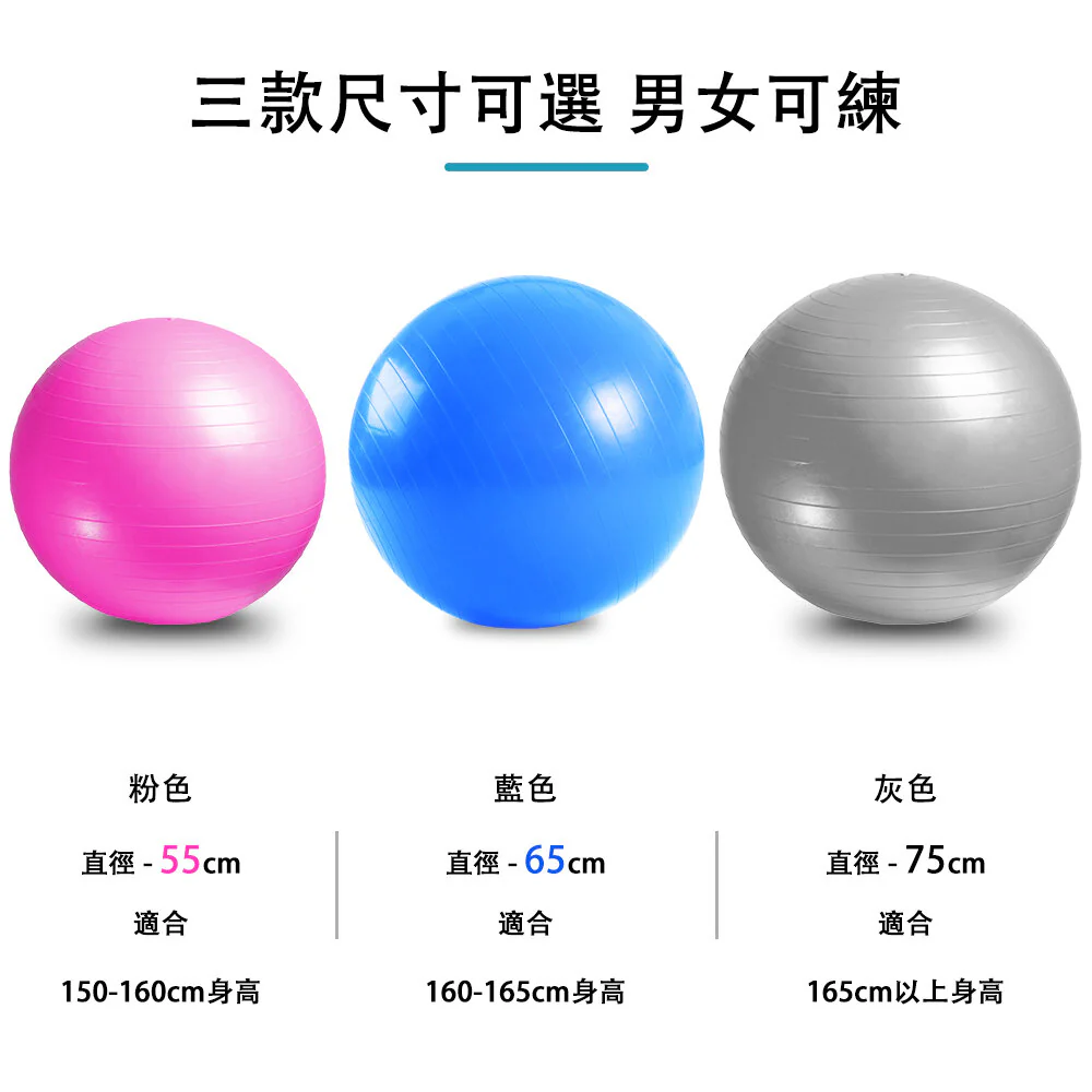 OneTwoFit OT0376 PVC 瑜伽球,有桃紅色(OT037601)、藍色(OT037602)、灰色(OT037603)三色可選,提供 55cm、65cm、75cm 三種尺寸,分別適配 150-160cm、160-165cm、165cm 以上身高人群,男女皆可使用。產品采用環保無乳膠、無毒的超厚 PVC 材質,安全無異味,最大承重 150KG(300 斤),具備高防爆性,被尖銳物刺穿時緩慢漏氣,搭配表面螺旋紋路防滑設計,運動更安全。它用途廣泛,可用於瑜伽、普拉提,還能替代辦公椅,助力增強力量、調整肌肉、提升靈活性與改善平衡。
