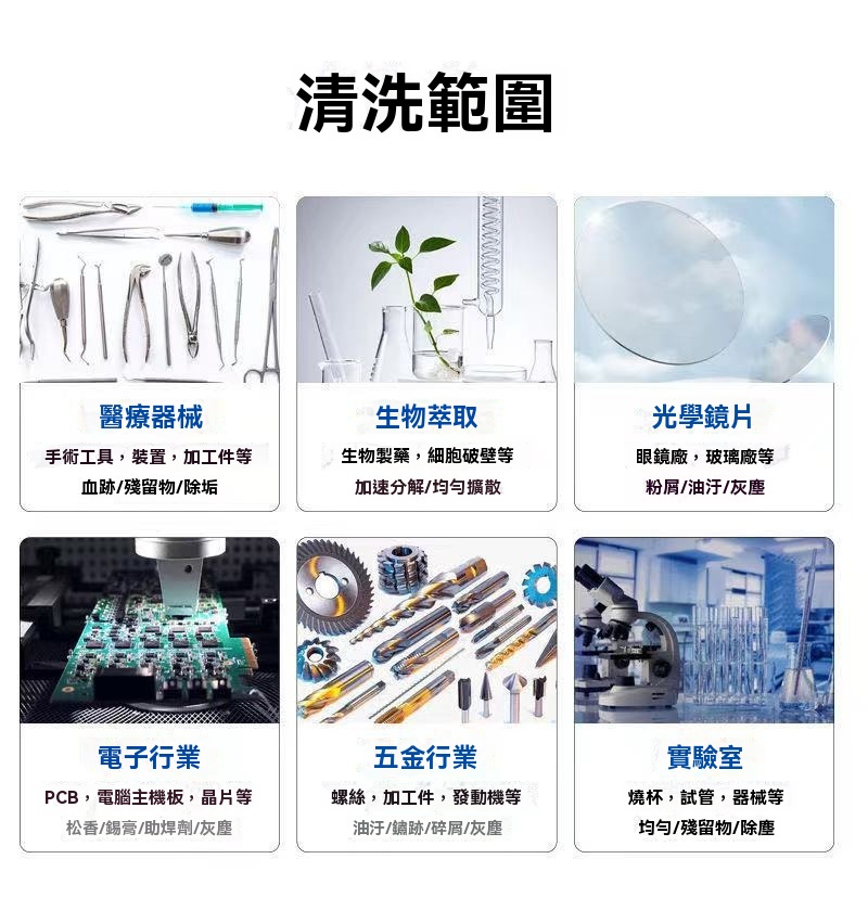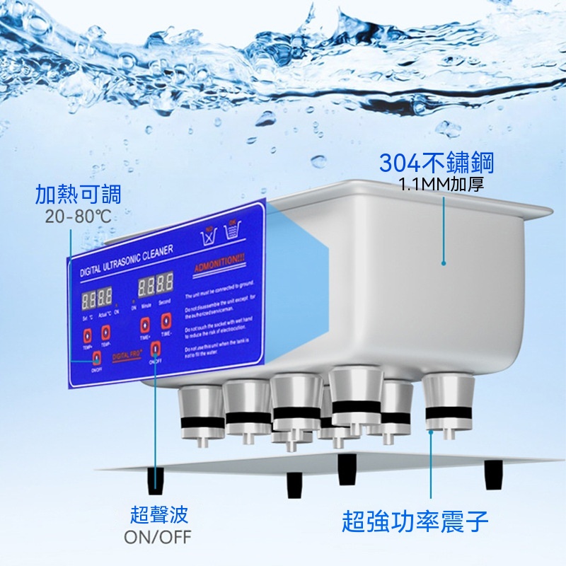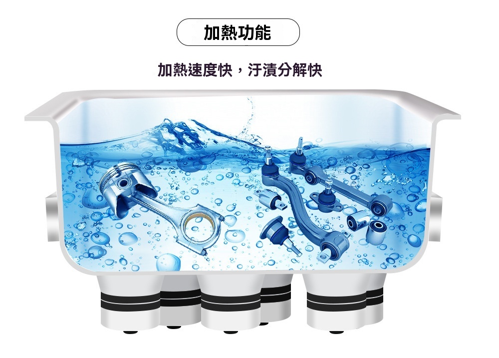 • 多功能清洗模式:整合超音波清洗、脫氣、半波、定時與加熱多種功能於一體,可應對從精密零件到重型工具的多樣化清潔需求。