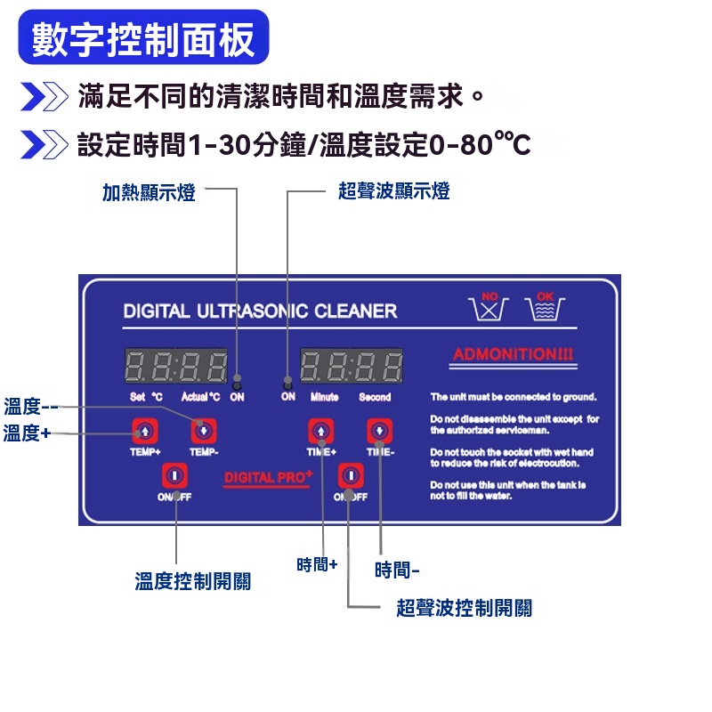 • 數位化精準控制:配備數位控制面板,可對清洗時間和溫度進行精準設定,操作直觀便捷。