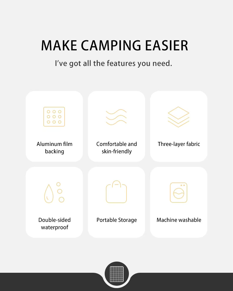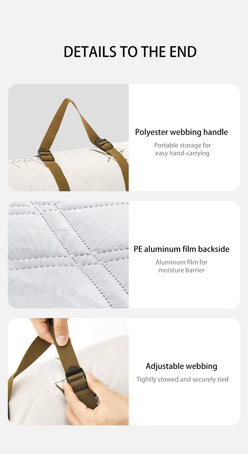 • 高效防潮:加厚鋁膜底層隔絕地面濕氣,讓戶外休息始終乾爽愜意。