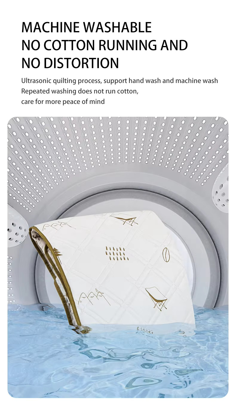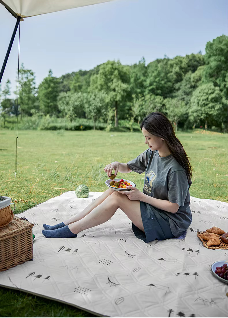 • 固棉製程:超音波固棉技術,避免內部針刺棉移位,保持野餐墊持久平整舒適。