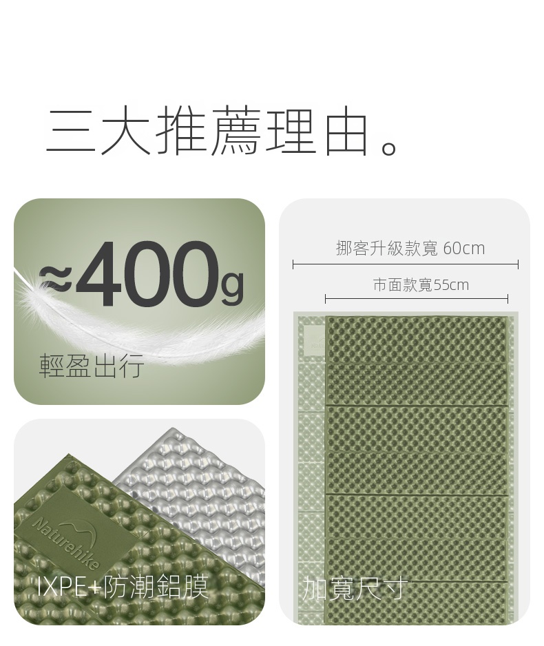 Buy Naturehike Troues-R1.8 折疊防潮墊(CNK2450WS044) - 綠色(單人款) | 防潮鋁背膜 | 蛋巢互嵌 price in outletexpress .com Hong Kong.In promotion and sale.