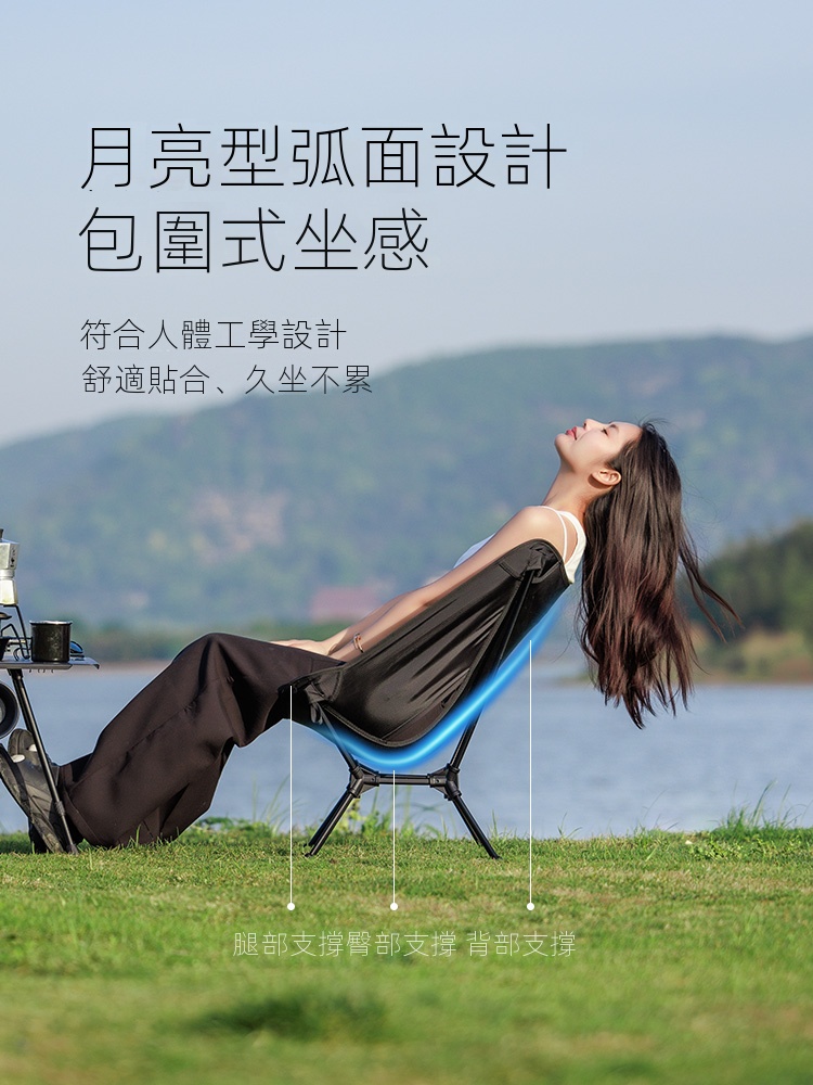 想要戶外休閒更愜意? BLACKDOG輕羽折疊月亮椅(CBD2450JJ020)是你的絕佳選擇!它僅重830克,採用7系7075鋁合金材質支架,結實耐用且承重強,搭配600D牛津布與尼龍網紗椅面,透氣又舒適。椅面寬度大,包裹感十足,坐感超棒。獨特口字型設計,時尚又穩固。安裝輕鬆,收納後小巧便攜,無論是露營、野餐或釣魚,隨時隨地都能為你提供舒適坐感,助你盡情享受戶外時光。