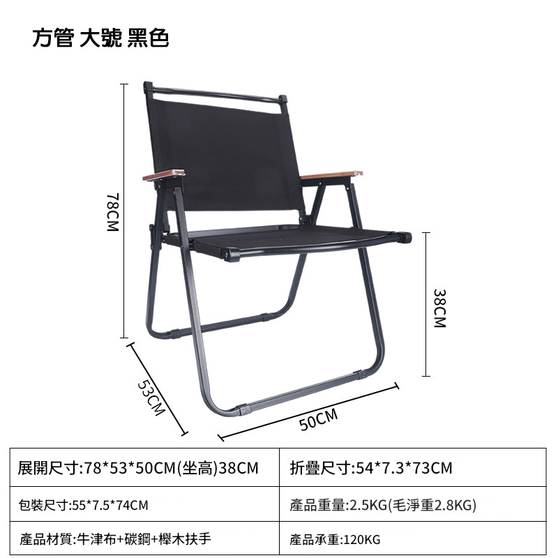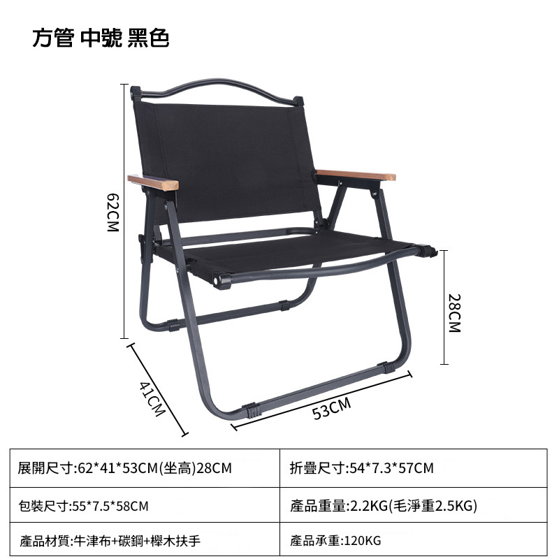 • 材質:碳鋼,牛津布,櫸木扶手