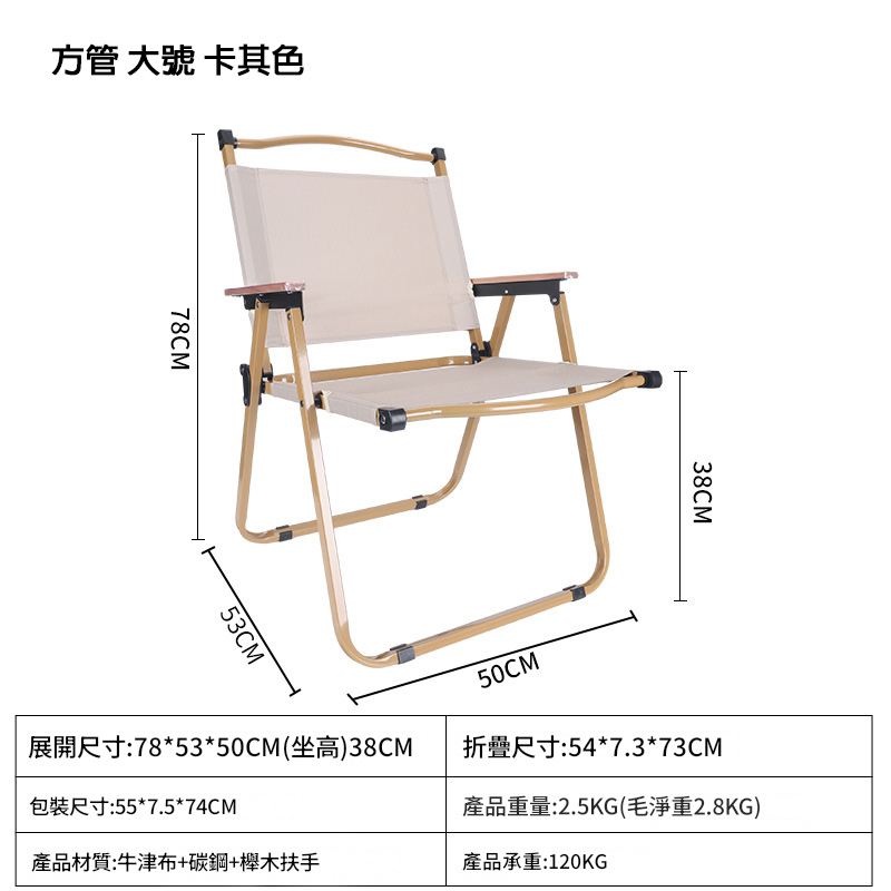 • 展開尺寸:78 cm (高度) × 53 cm (寬度) × 50 cm (深度),座高約 38 cm