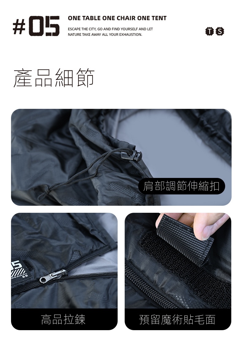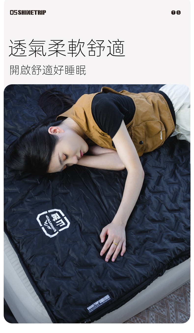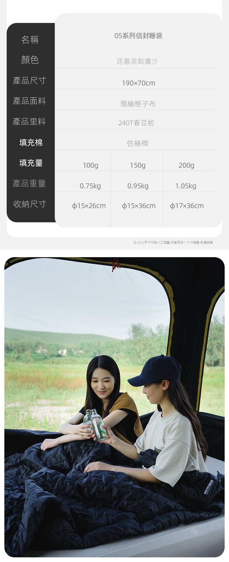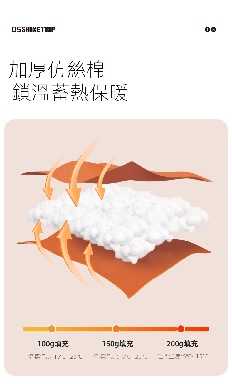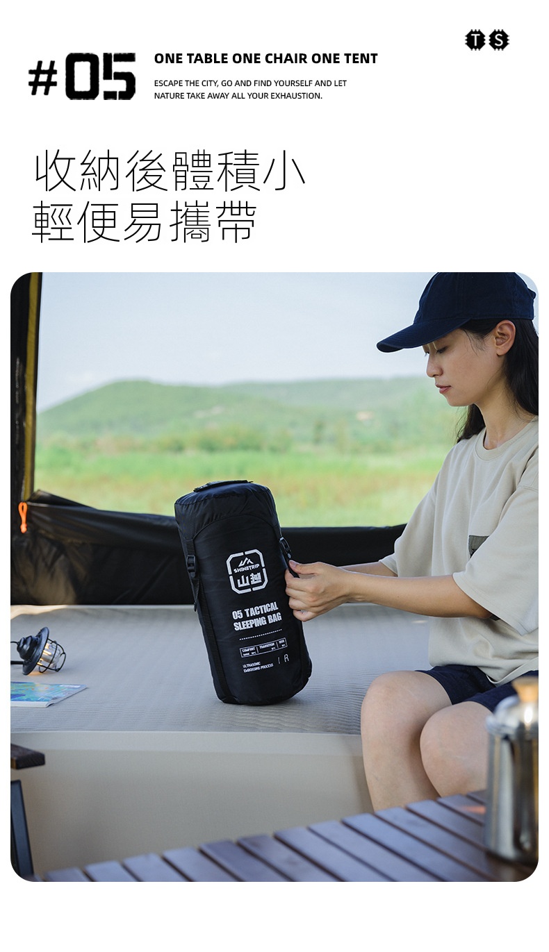 SHINETRIP 山趣 05系列 信封露營睡袋,提供透氣柔軟的舒適體驗,溫度適應範圍為5℃至15℃。獨特的雙拉鍊設計可拼接成雙人睡袋,底部拉鍊方便自由伸腳。它提供充裕睡眠空間,收納後體積小巧輕便易攜帶。無論露營或日常使用,都能享受舒適好眠。