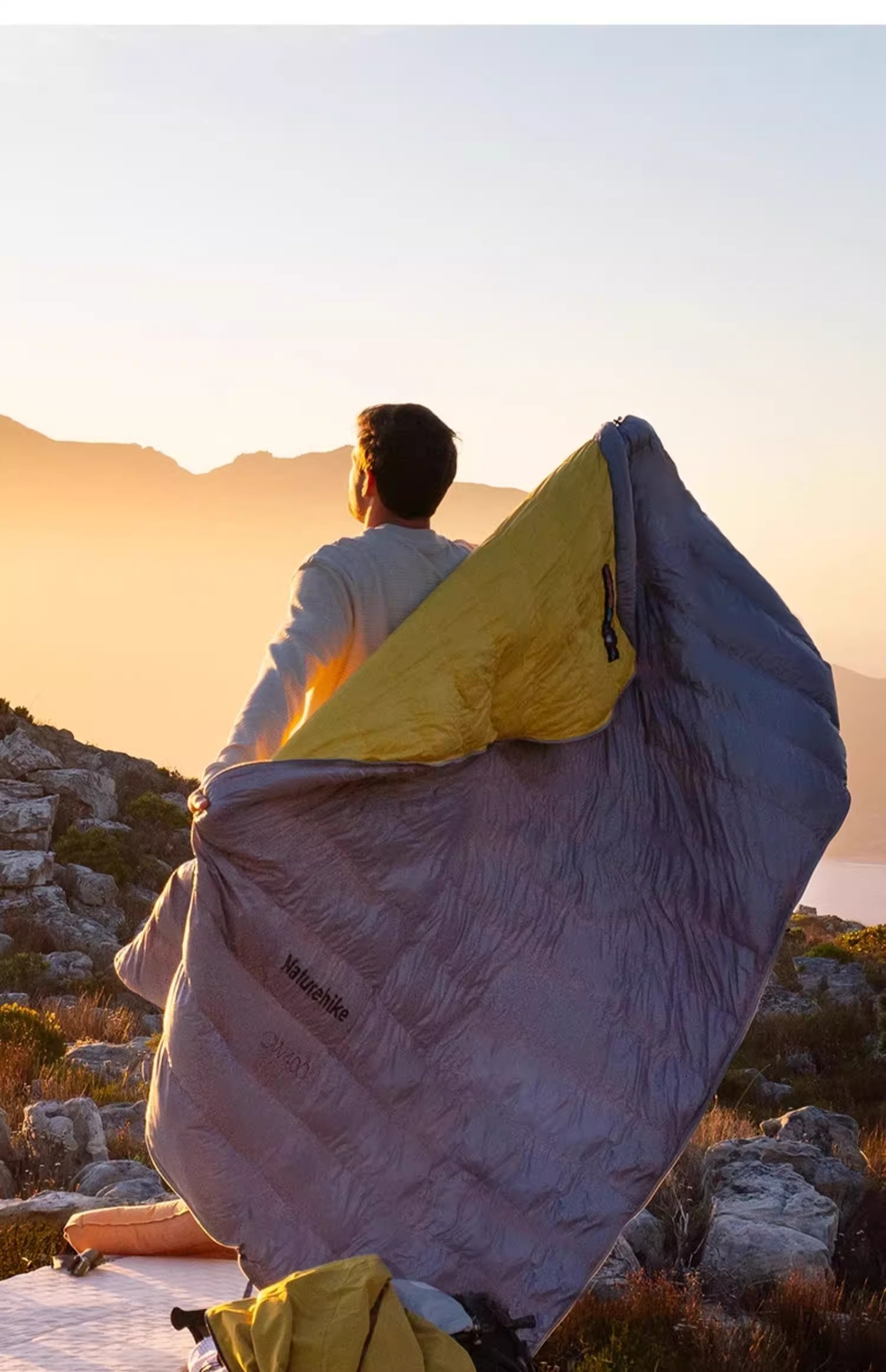 Naturehike CW400 方形羽絨睡袋,採用650FP高蓬鬆鴨絨填充,輕盈保暖,攜帶方便。信封式設計,腳部配有拉鍊,透氣不悶熱,可完全展開變身為毯子或披風,多種使用模式隨心切換。錦綸面料耐用,YKK拉鍊順滑不粘毛。適合露營、徒步等戶外活動,提供舒適的睡眠體驗。
