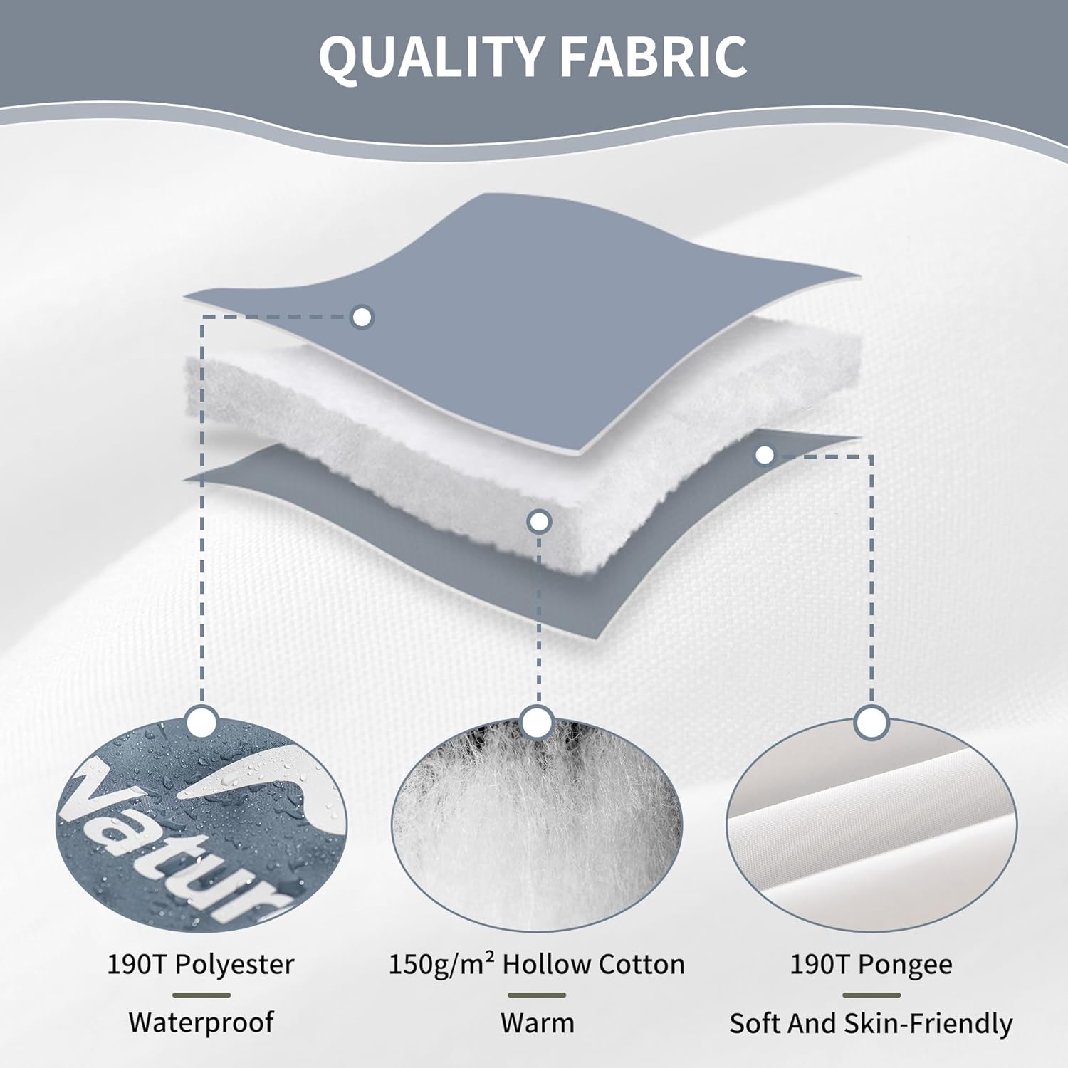 • 防潑水布料:外層採用特殊處理的防潑水布料,可快速排開雨水、露水,抵禦戶外潮濕環境,保護內部填充物乾燥。