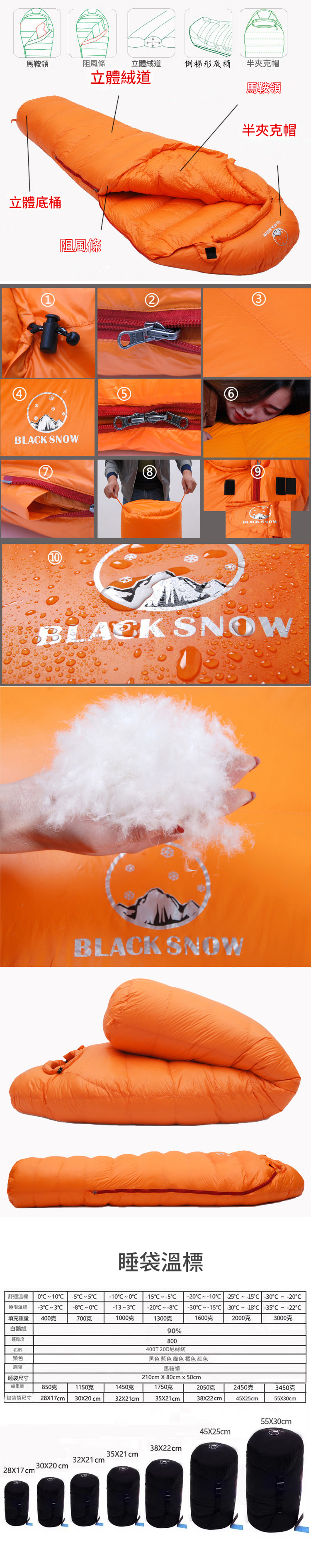 BLACK SNOW 極寒羽絨睡袋採用親膚布料,提供超強保暖效果。適合戶外露營,可左右互拼,增加使用靈活性。便攜收納設計,輕鬆攜帶。防水面料與細緻車線,耐用且防風。多種顏色選擇,滿足不同需求。無論是登山還是野營,此款睡袋都是您的理想選擇。