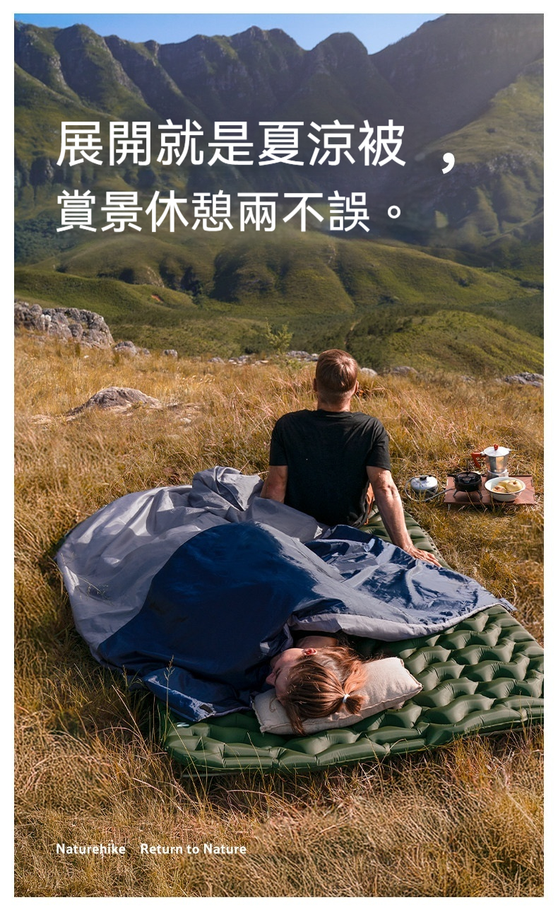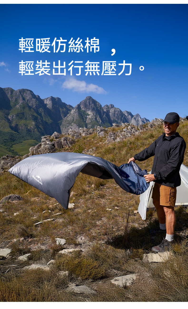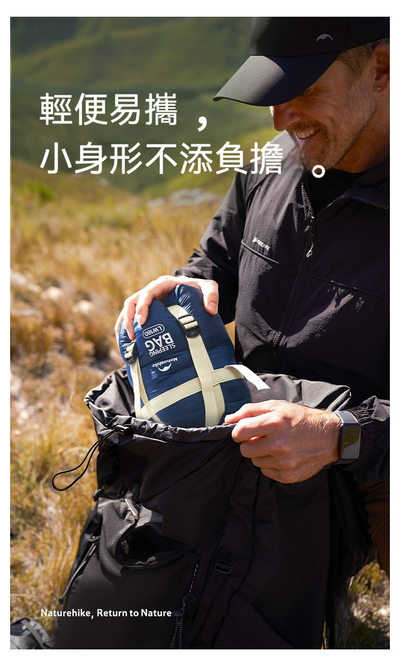 Naturehike Sunny Day PL01信封睡袋以輕柔鎖溫、自然同頻好睡眠為理念,採用輕暖仿絲棉填充與柔滑塔夫綢面料,帶來舒適透氣的睡眠體驗。睡袋可單人使用,亦可上下拼接成雙人睡袋,靈活適應各種場景。收納後體積小巧,輕便易攜,無論是戶外露營、差旅出行或居家備用,皆能輕鬆陪伴,為每一次休憩注入溫暖與安心。