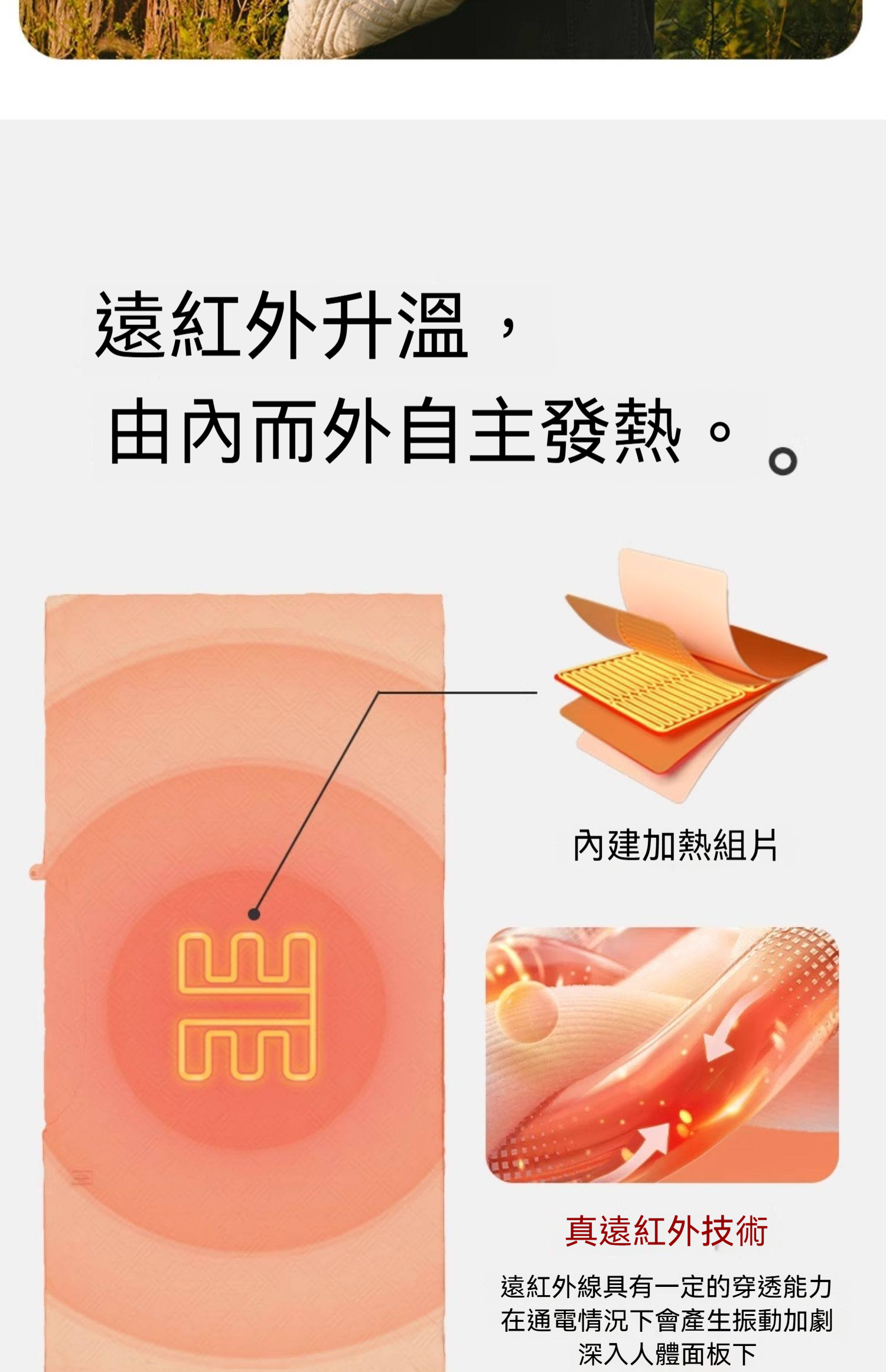 Naturehike Clear Sky 保暖加熱毯是一款融合遠紅外發熱技術的多功能保暖毯。通電後可迅速產生溫熱,由內而外傳遞暖意,搭配三檔智能調溫,滿足睡眠、日常及戶外保暖需求。毯身輕巧柔軟,收納便捷,既可作為披肩禦寒,亦能作為睡袋內襯或居家蓋毯,一物多用。無論是冬日居家、辦公小憩,或是戶外露營、差旅出行,皆能為你帶來隨身攜帶的溫暖守護。