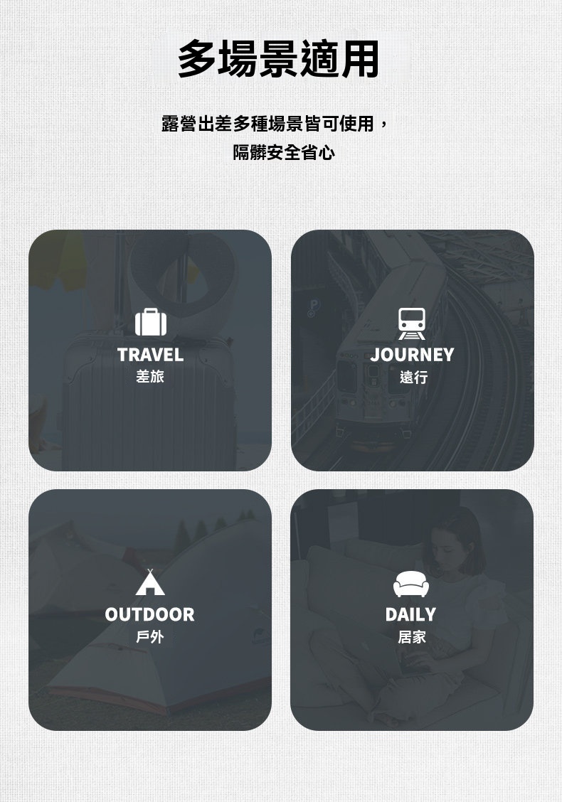 • 多場景適用-適用於露營、差旅、戶外、居家等多種場合,隔髒衛生。