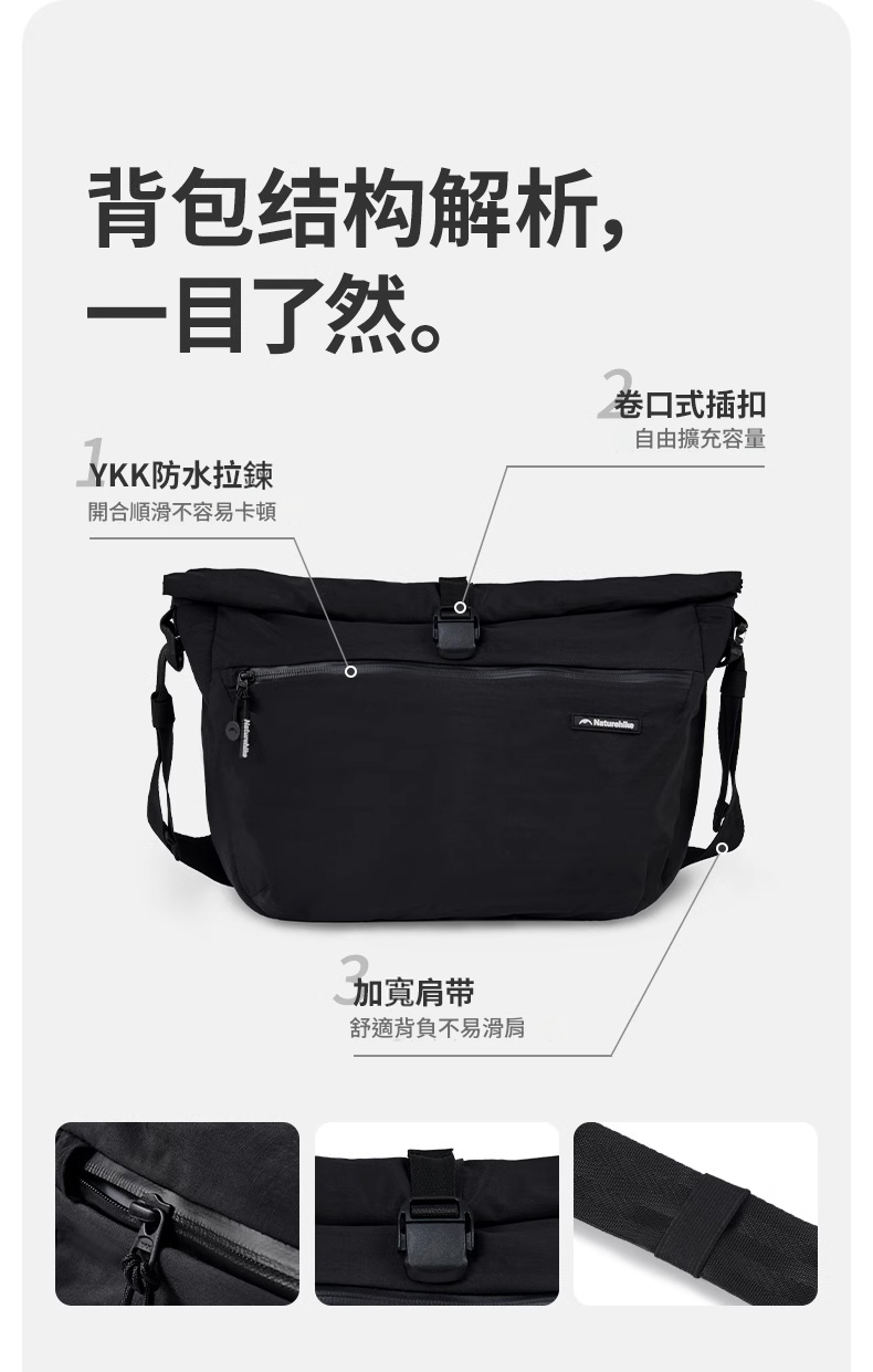 Outlet Express HK 生活百貨城在香港觀塘提供 Naturehike Oxygen 二合一卷蓋斜挎包(CNK2450XB022) - 黑色 | 容量拓展 | 多種揹法 在那裡買邊到買或邊度買代理資料及價錢實惠借批發優惠以及公司學校報價,更可送到香港或澳門而部份產品比團購更優惠,更可以為你推薦推介相似產品及優點缺點,請留意我們最新產品價格更新。