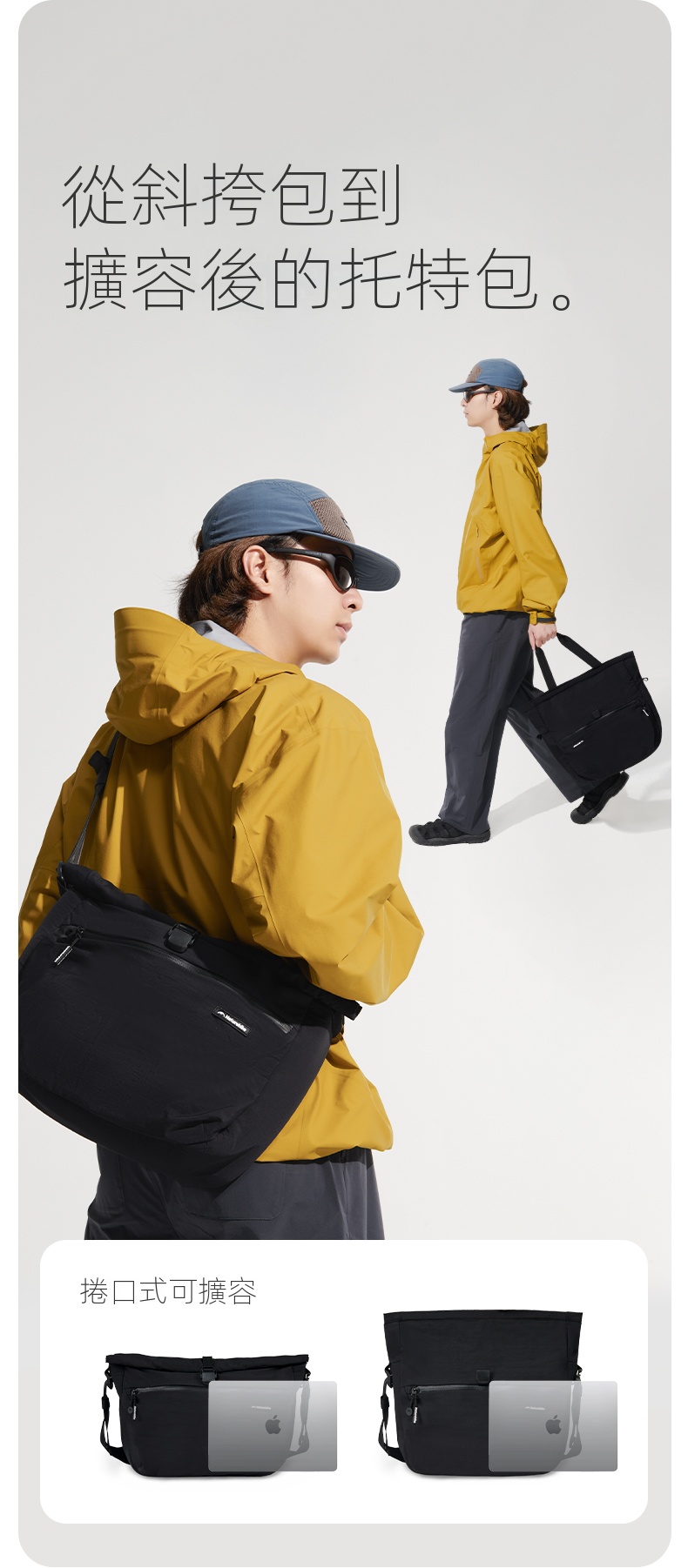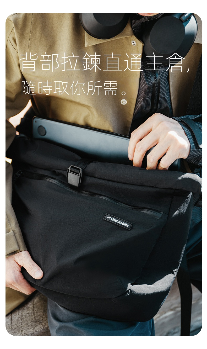 Naturehike Oxygen二合一卷蓋斜挎包,輕鬆應對日常與旅行需求。此款黑色挪客設計,採用捲口式插扣與YKK防水拉鍊,提供靈活擴展容量及多種背法,滿足不同場合需求。加寬肩帶舒適不滑肩,背部開口直通主倉,方便快捷取物。內設大容量主倉、可脫卸髒衣袋及獨立電腦倉,分類收納井然有序。無懼旅途風雨,輕便實用,這款斜挎包是您出街旅行的最佳搭檔。