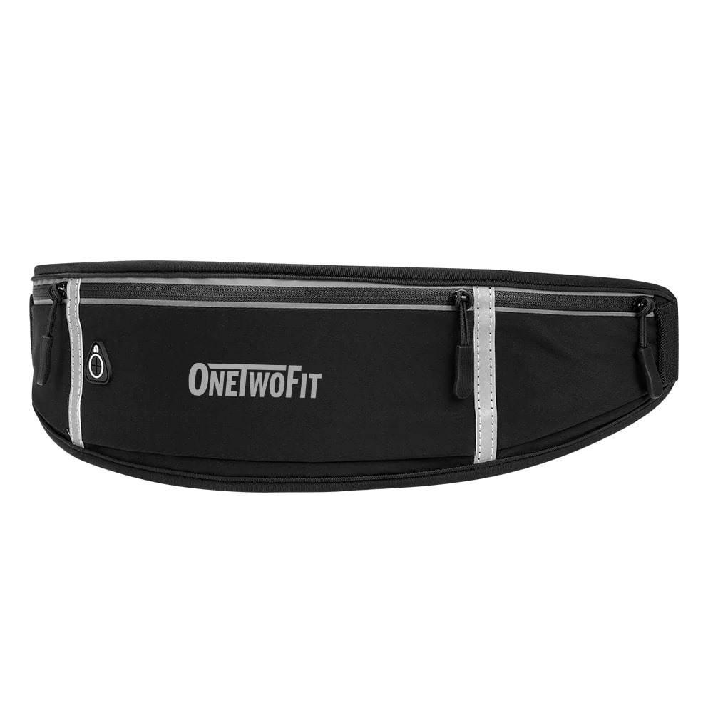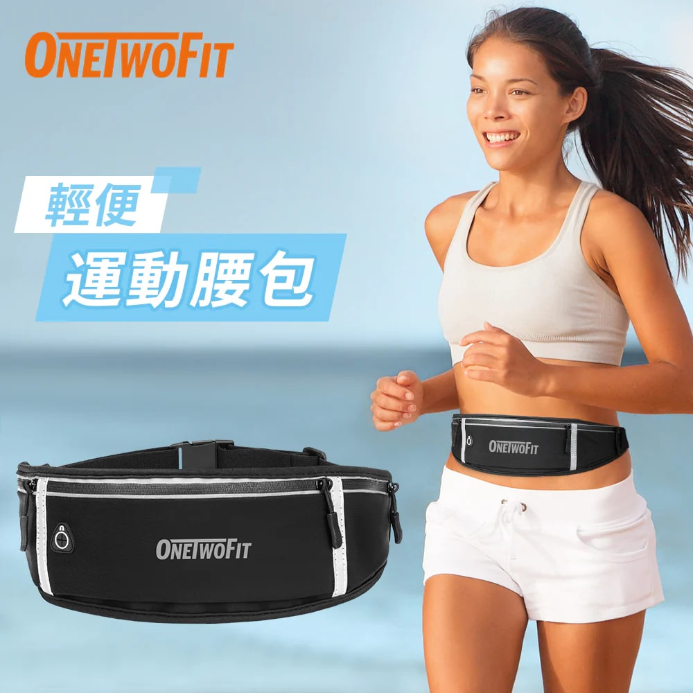 OneTwoFit OT048501 輕便健身腰包 - 黑色 | 耳機線孔設計 | 3m反光帶 | 香港行貨