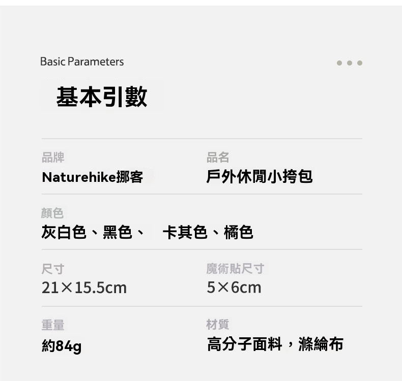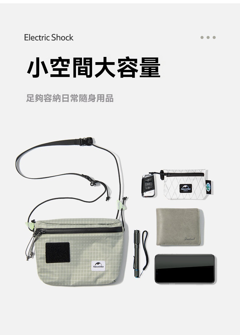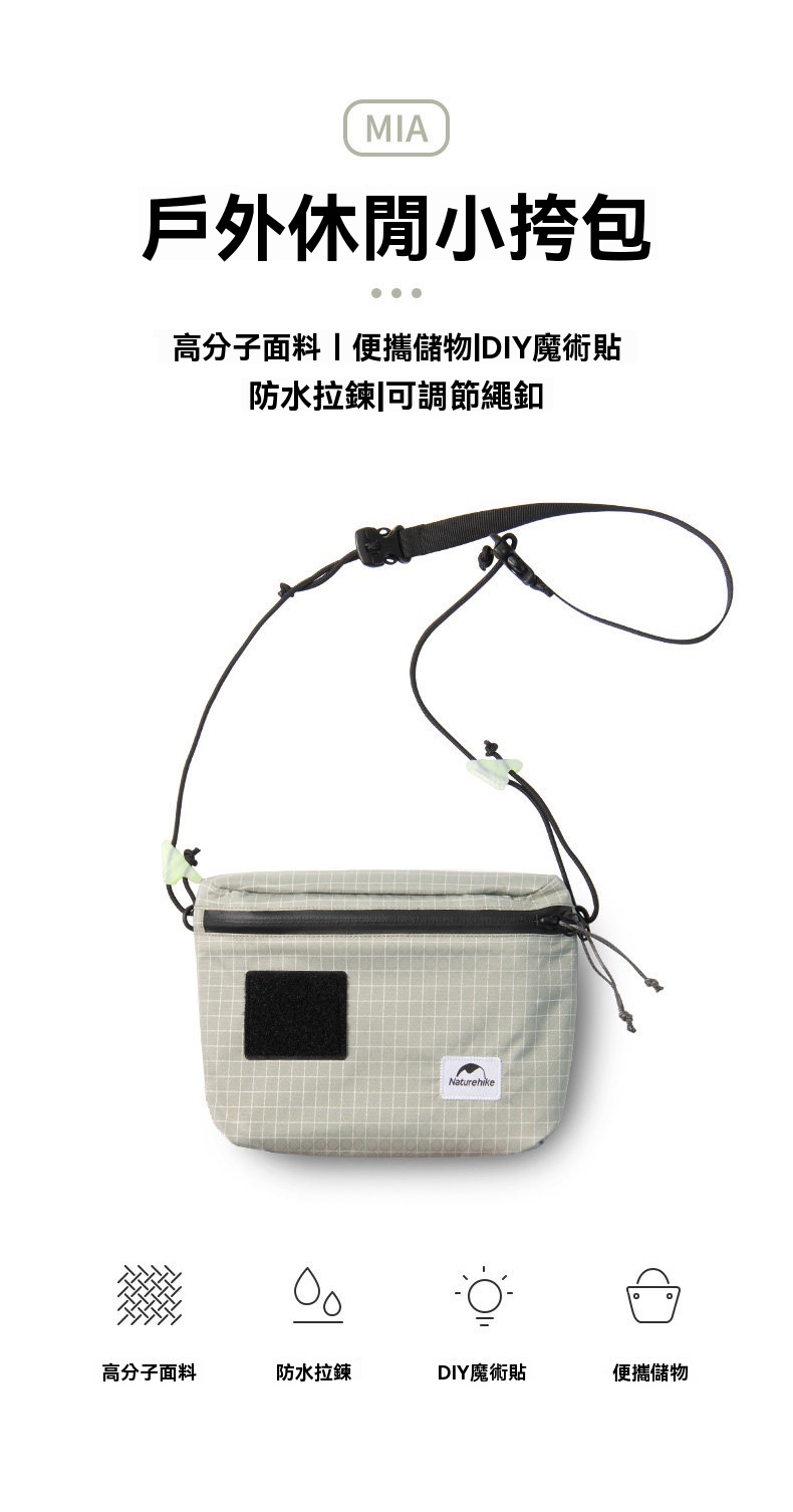 Naturehike ZT-12 Mia 3L多功能收納小包包,採用輕量高分子面料,僅重約84克,便攜設計適合日常隨身攜帶。YKK防水拉鍊確保物品乾爽,夜光網釦方便暗光環境使用。小空間大容量,能輕鬆收納手機、鑰匙等隨身物品,背面魔術貼口袋增加儲物靈活性,是戶外活動或都市休閒的實用配件。
