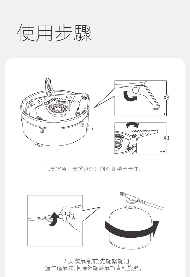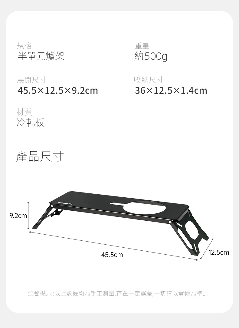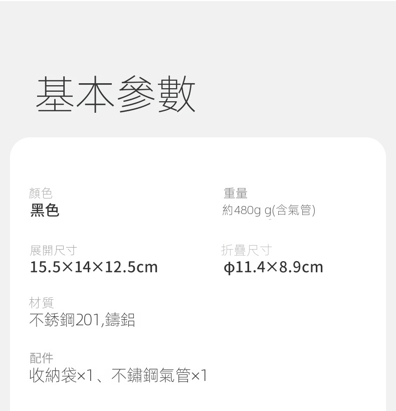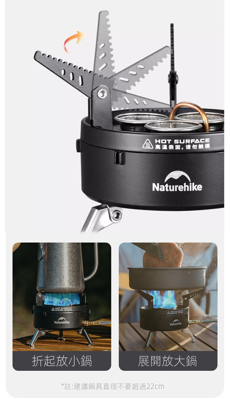 • 折疊穩固腳架:適配多種鍋具,展開可放大鍋,折起時適合小鍋(建議鍋具直徑不超過22cm),靈活應對不同需求。