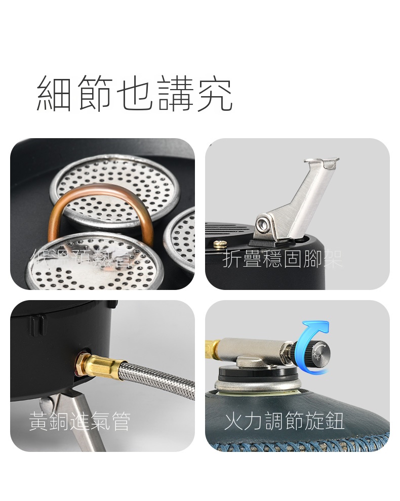 • 精緻細節設計:低溫預熱管、黃銅進氣管及火力調節旋鈕,提升使用便利性和安全性。