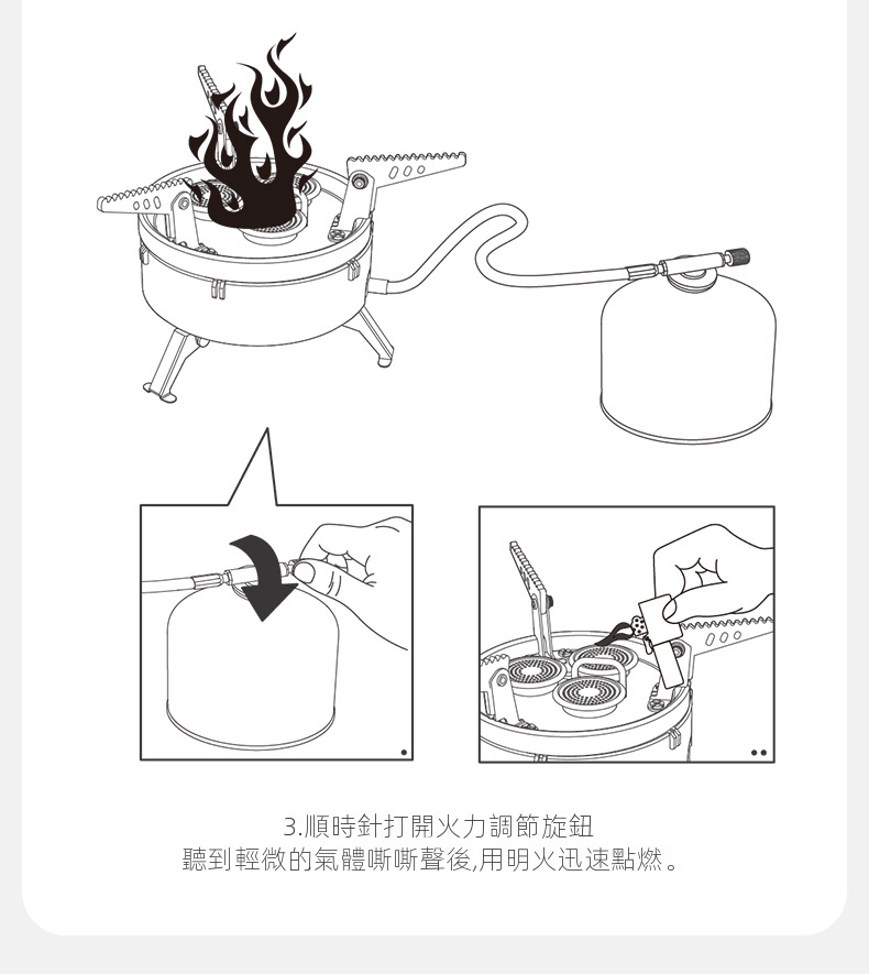 大功率三頭瓦斯爐採用IGT半單元設計,收納小巧,便於攜帶,讓您隨時隨地享受烹飪的樂趣。擁有3300W的強勁火力,能迅速將飯菜煮熟,節省寶貴的烹飪時間。其折疊穩固的腳架適配多種鍋具,無論是大鍋還是小鍋(建議直徑不超過22cm),都能靈活應對。加上低溫預熱管、黃銅進氣管及火力調節旋鈕的精緻設計,提升了使用的便利性與安全性,是戶外烹飪的理想選擇。