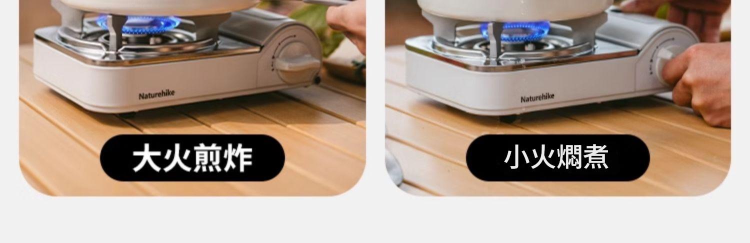 Naturehike白舟迷你聚能卡式爐頭,是戶外烹飪的得力小助手。它以罐裝丁烷氣為主要燃氣,體型小巧,方便攜帶,折疊後能輕鬆收入行囊,不佔空間。爐頭具備多檔火力調節功能,可滿足燒水、炒菜、煮湯等多樣化烹飪需求,最大火力強勁,能快速煮熟食物。獨特的聚能設計,讓火焰集中,加熱效率更高,也節省瓦斯。它擁有國標強制要求的過壓保護裝置,保障使用安全。無論是露營野餐,還是戶外聚會,這款卡式爐頭都能為你帶來便利美味的烹飪體驗 。