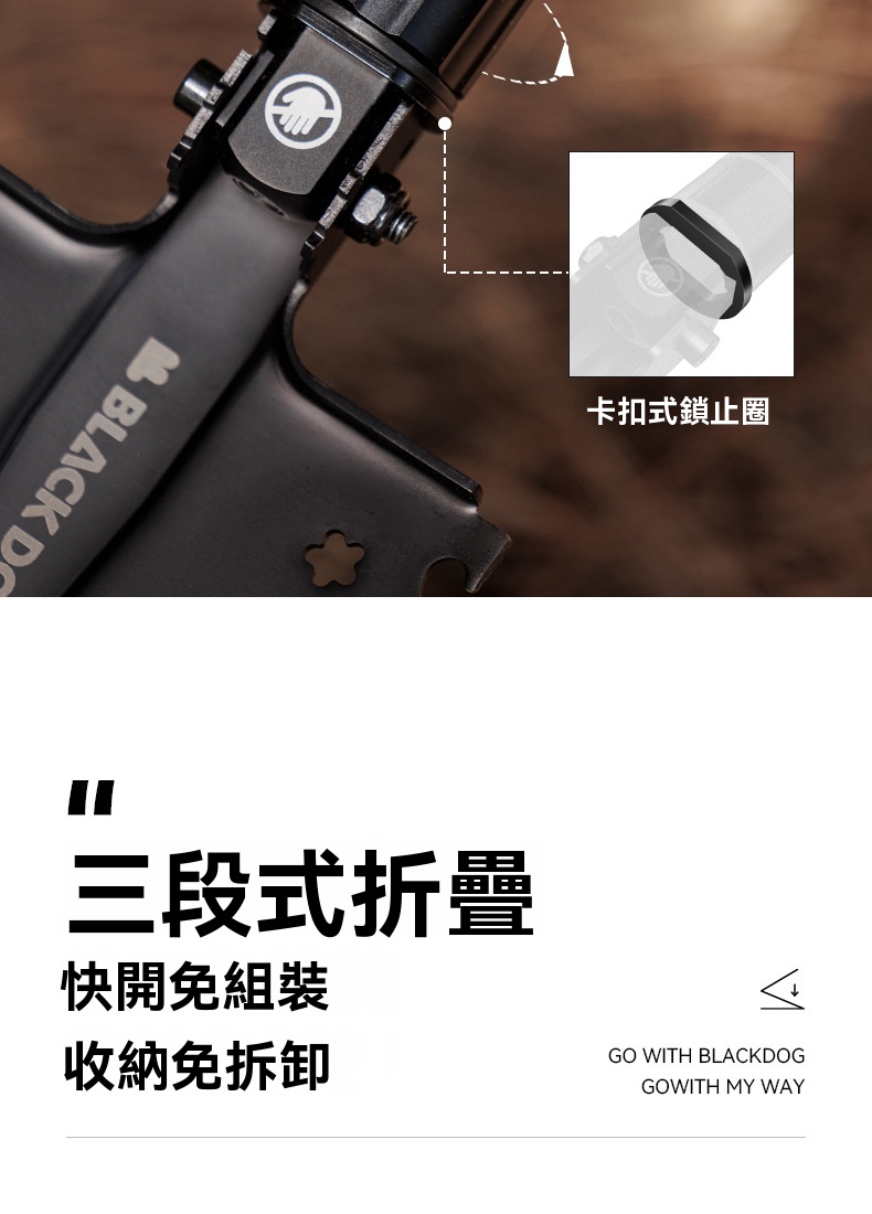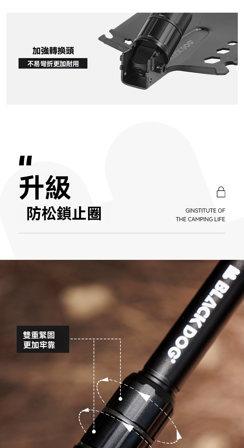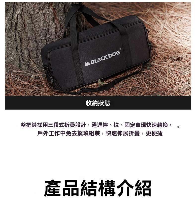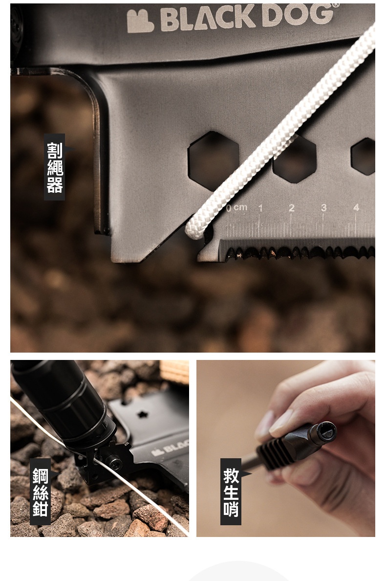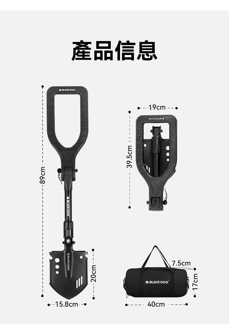 戶外露營、開車出行,怎能少了一個實用的工具? BLACKDOG Defender可折疊工程鏟(CBD2450PJ018)絕對是你的得力助手!這款工程鏟採用黑色外觀設計,酷颯十足。它具備三段折疊功能,方便收納攜帶,輕鬆放入背包或車載後行李箱。別看它能折疊,功能卻十分強大。它集鏟、刨、劈、鋸等多種功能於一身,鏟土、刨地輕鬆高效,還能用於劈柴、鋸木。同時,鏟上也設計了開瓶、取釘等實用細節,內建口哨鎂棒,在不同場景都能派上用場,是戶外愛好者的絕佳選擇 。