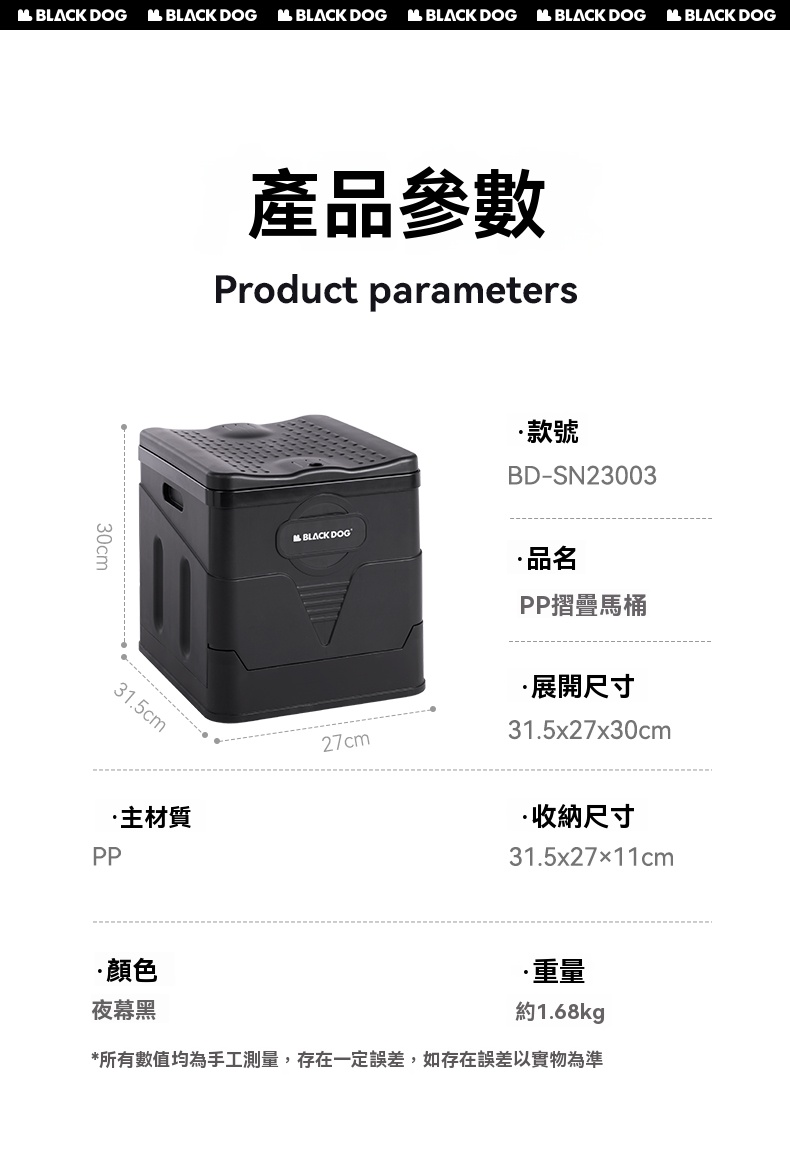 戶外出門上廁所不再尷尬! BLACKDOG 防臭折疊馬桶來幫忙。它採用便利的三步驟折疊設計,幾秒鐘就能完成展開與收納,輕鬆塞進汽車後車箱、露營背包,不佔空間。這款馬桶結構穩固,精選優質 PP 材料,承重力強,大人小孩放心使用。獨特防臭設計,有效隔絕異味,保持環境清新。無論是戶外露營、長途自駕,還是旅行應急,它都是貼心之選,讓你隨時隨地享受舒適如廁體驗 。