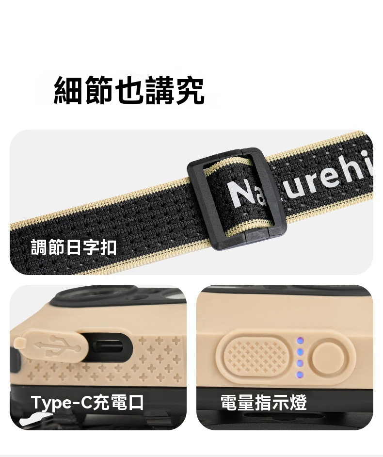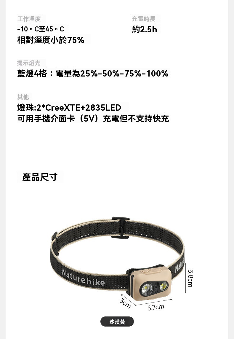 Naturehike 星嶼 · 戶外登山超輕強光頭戴式照明燈 (CNK2450ZM015) - 沙漠黃 | 400lm高亮 | 70°仰俯大角度
