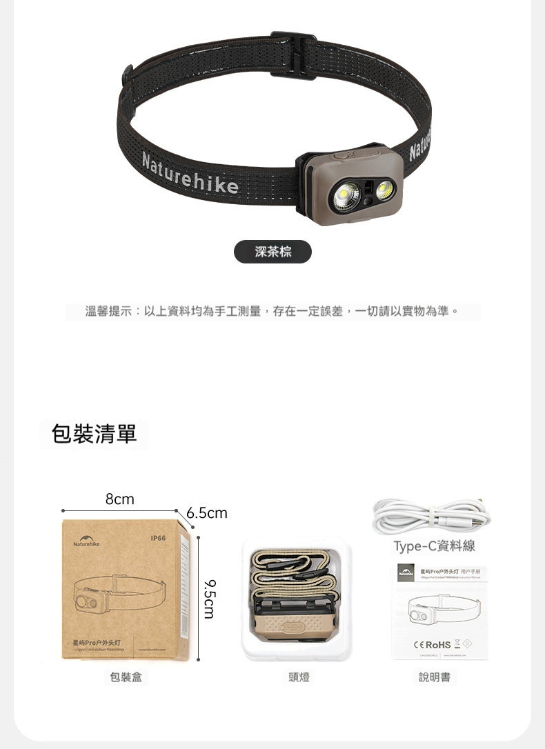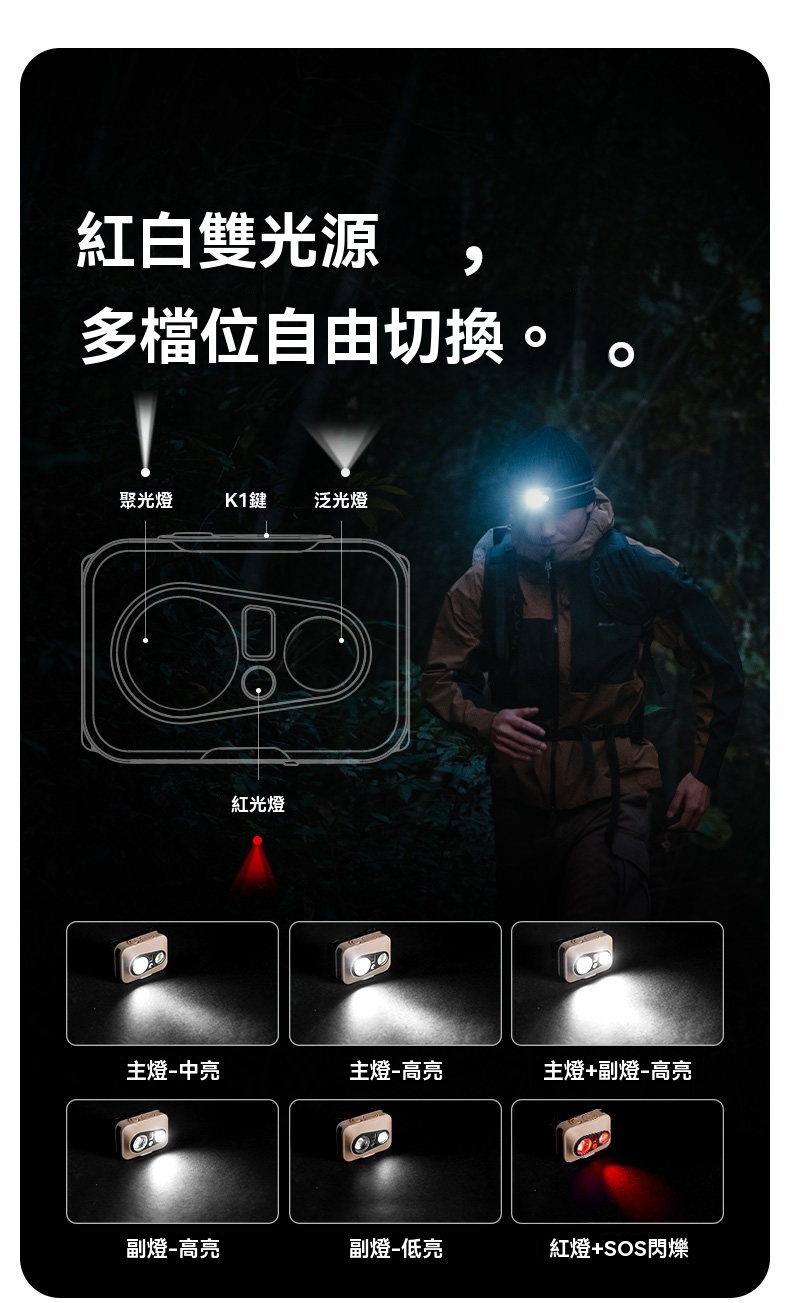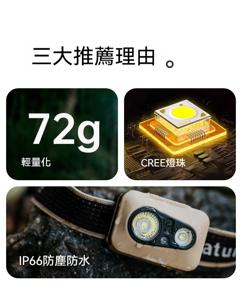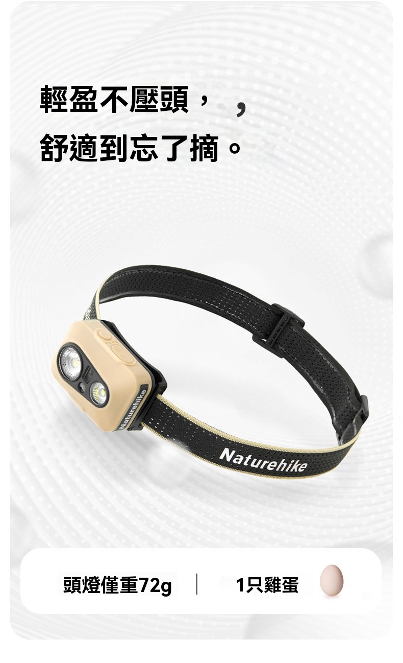 • 極致輕量:頭燈僅重72克,佩戴舒適無負擔