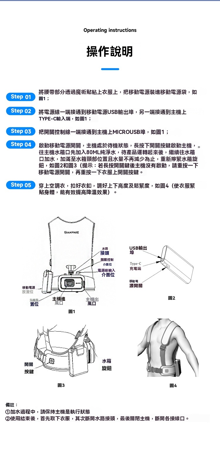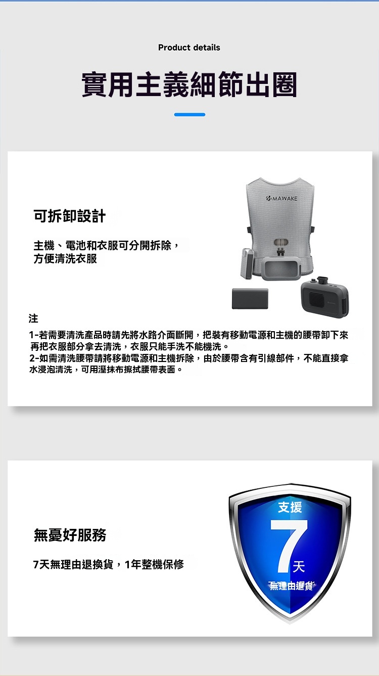 • 產品配置:主機*1、空調衣*1、電源*1、充電線*1、介面卡*1、說明書*1、收納袋*1