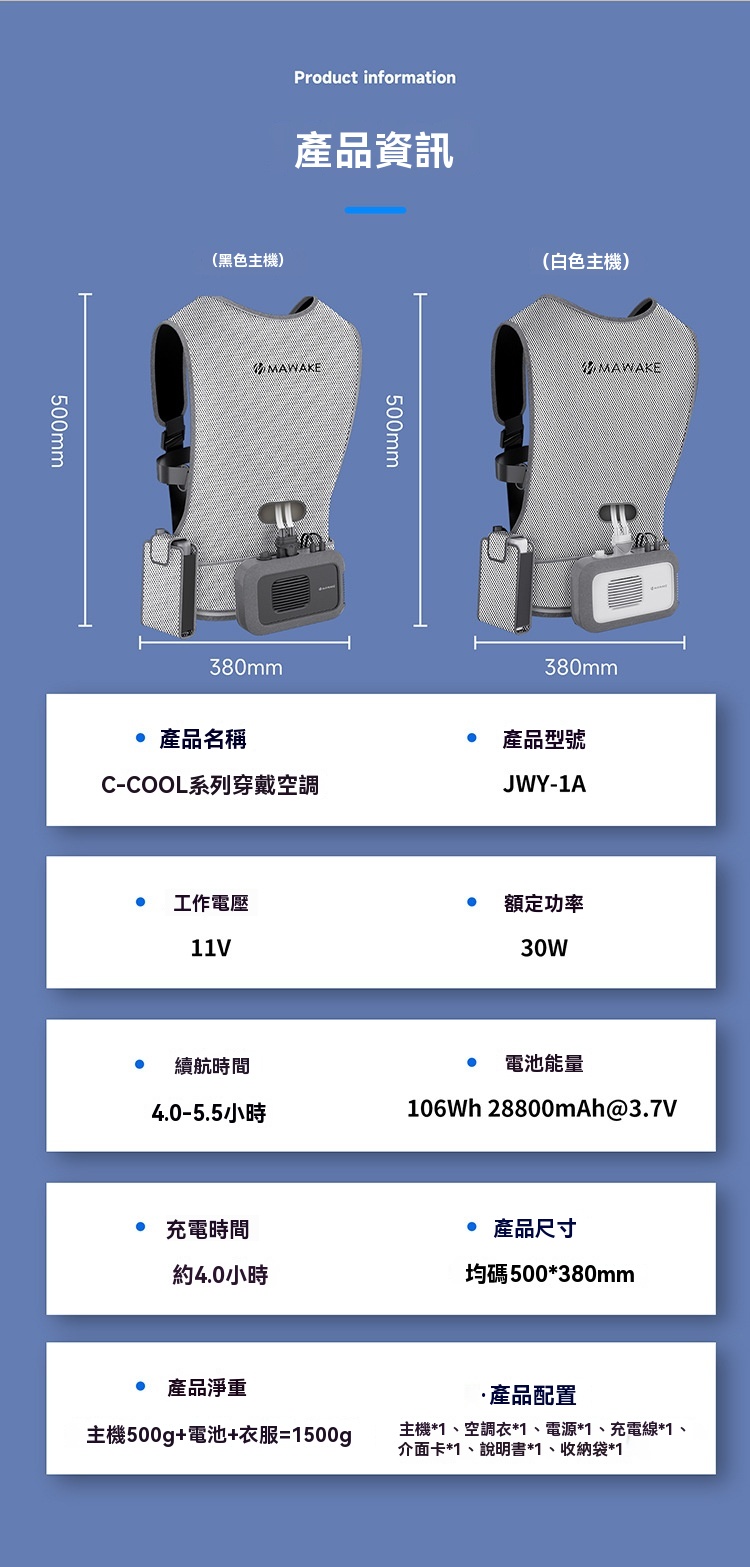 • 產品名稱:C-COOL系列穿戴式空調