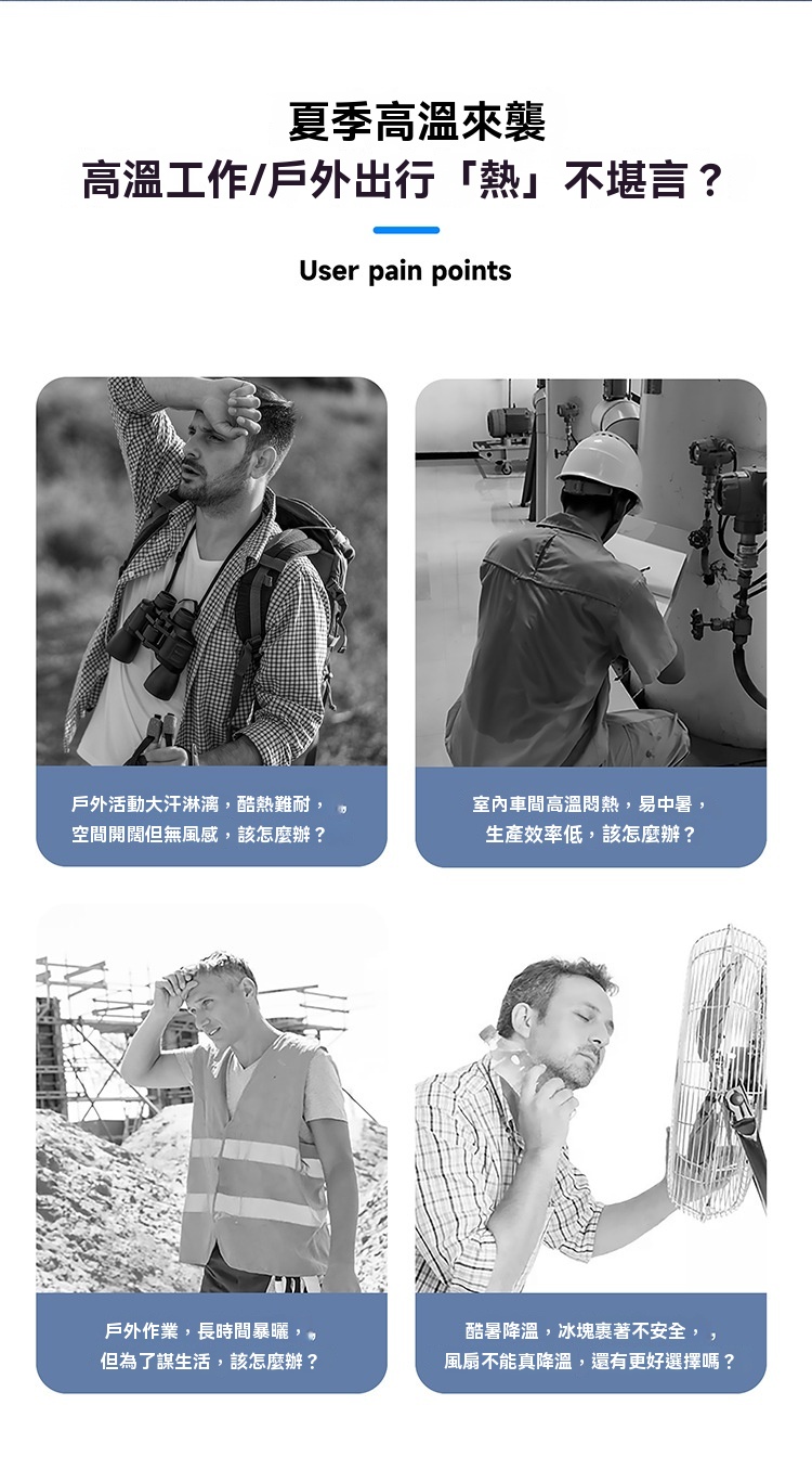 • 持久清涼:一次充冷可維持 2 - 4 小時降溫效果,為長時間戶外作業或活動提供持續清涼。