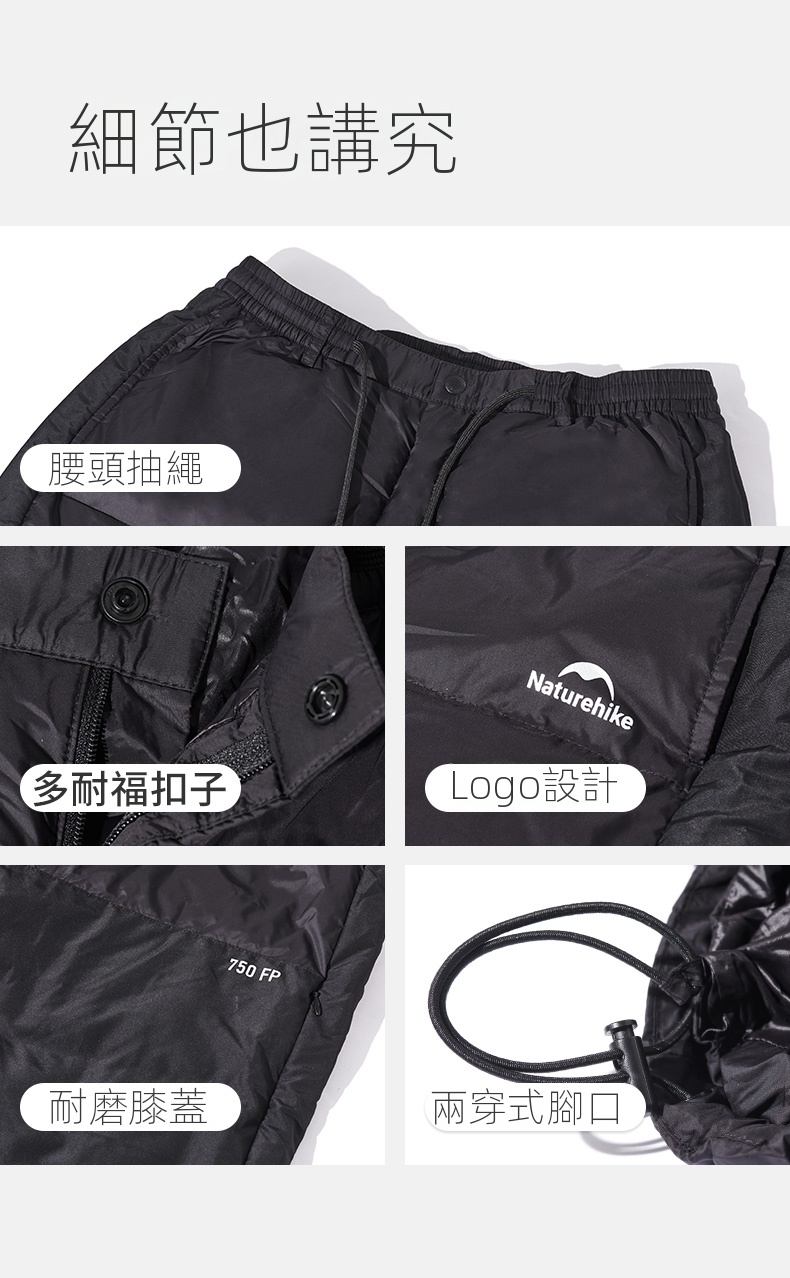 Buy Naturehike DW-280 戶外白鴨絨保暖羽絨褲 (CNK2550FS011) - 黑色-L碼 | 靜態保暖 | 750FP+高蓬白鴨絨 price in outletexpress .com Hong Kong.In promotion and sale.