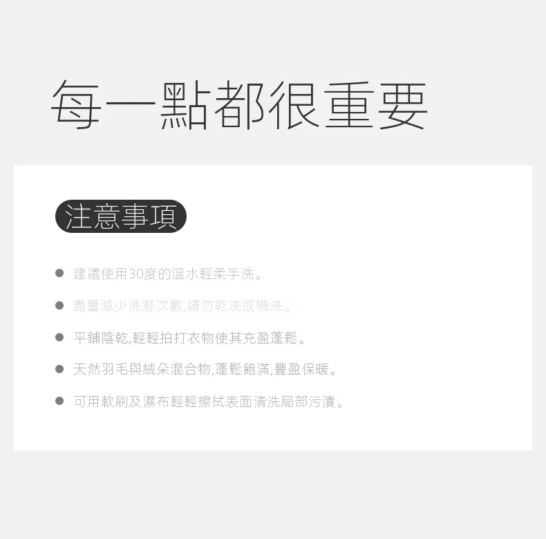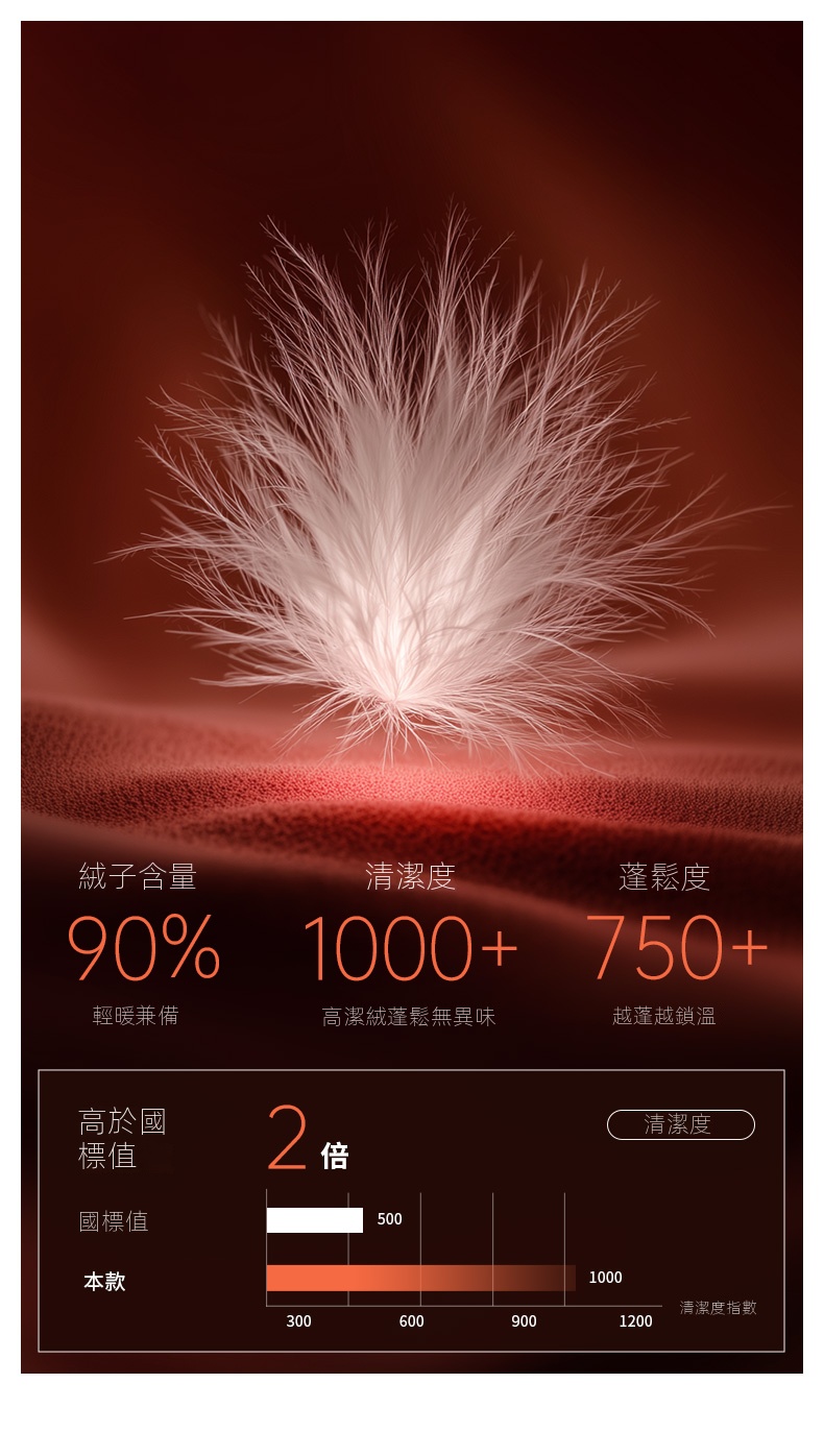 • 填充物:鴨絨(絨子含量90%)