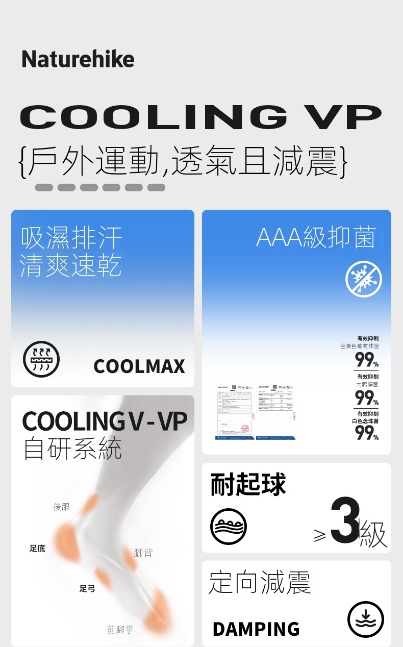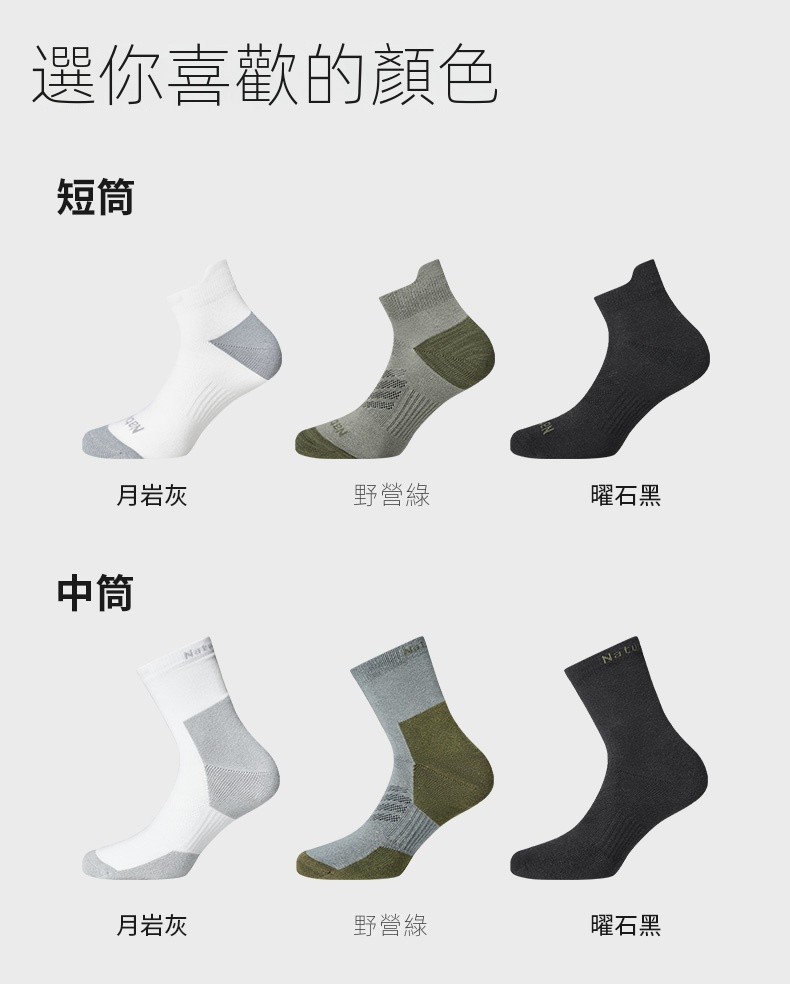 Naturehike速乾運動襪,採用Coolmax吸濕排汗技術,具備AAA級抑菌功能,有效抑制金黃色葡萄球菌和大腸桿菌,保持雙腳清爽無異味。專為戶外運動設計,前掌加厚減震毛圈底,緩解下坡衝擊力,後跟及腳背定向減震,長時間行走不易起泡。無骨縫合與直角襪跟設計,貼合亞洲人腳型,不會勒腳。彈性適中,適合不同腳型。面料含42%棉、40.6%聚酯纖維等,透氣舒適。適用於露營、出遊等場景,讓你輕鬆回歸大自然,多走10KM也不怕。